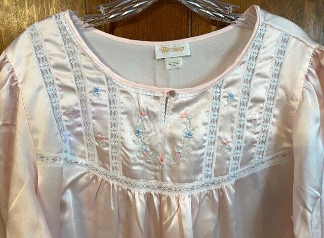 как выглядит Vintage Barbizon Womens Size L Pink Floral Satin Feel Waltz Length Nightgown фото