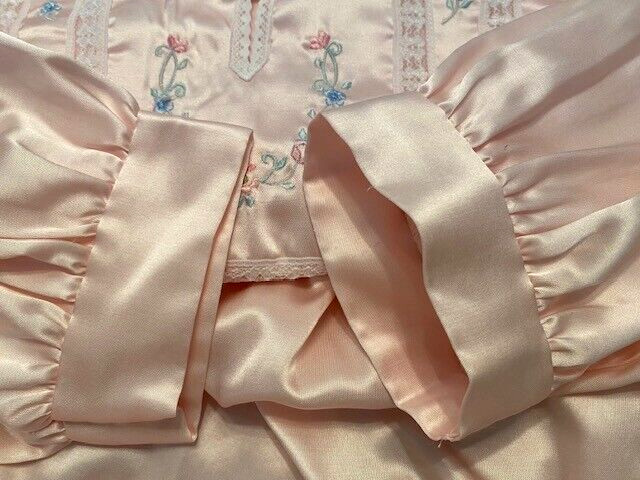 Vintage Barbizon Women's Size L Pink Floral Satin Feel Waltz Length Nightgown