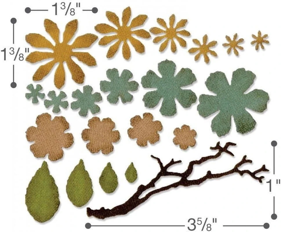Sizzix TIM HOLTZ SMALL TATTERED FLORALS Thinlits Dies 661806 BRANCH LEAF