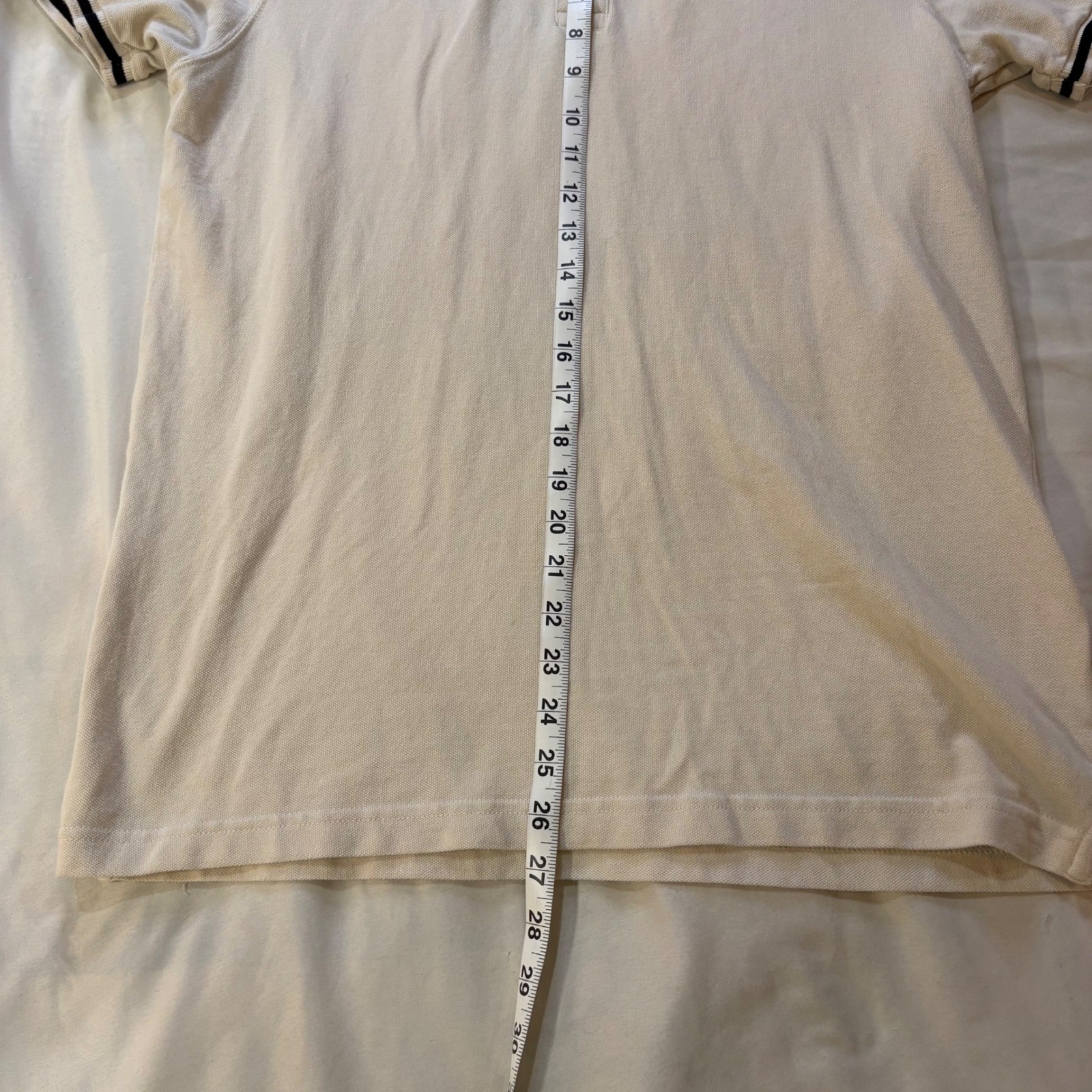 True Religion Polo Shirt Mens Medium Cream Black Trim Short Sleeve Logo Golf