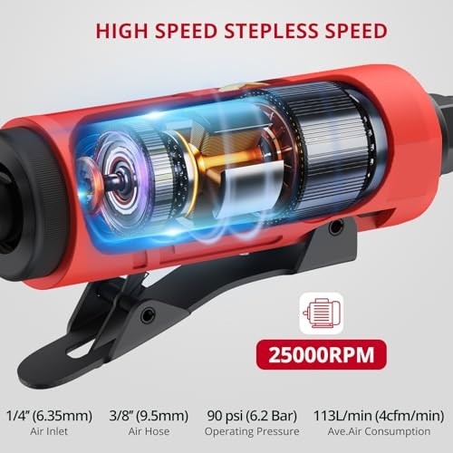 High-Speed 25000 RPM Air Die Grinder with Exhaust, 1/4 1/8 Collets, Polishin