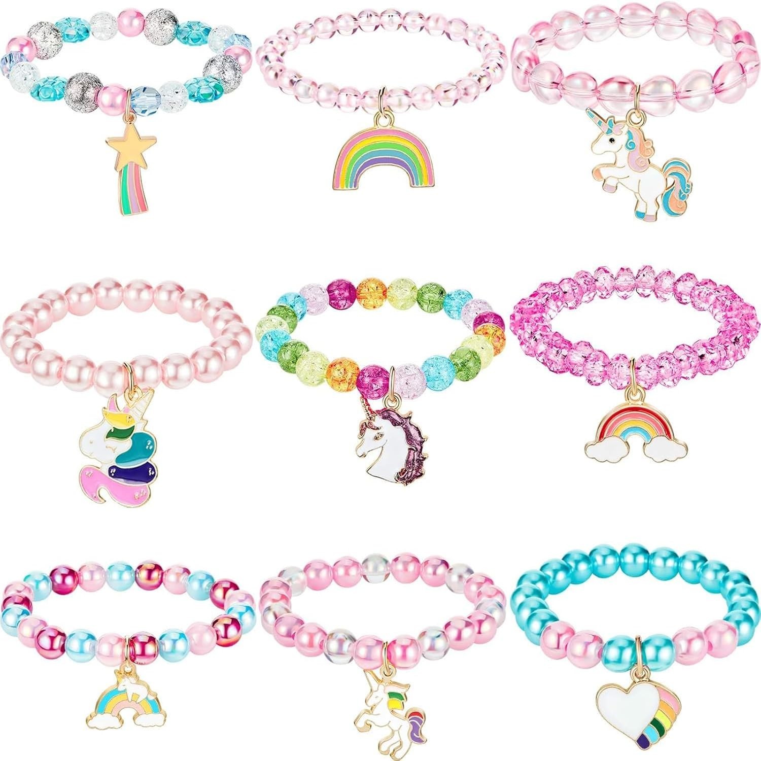 9 Pcs Unicorn Rainbow Bracelets Beaded Jewelry for Unicorn Party Favors Gala ...