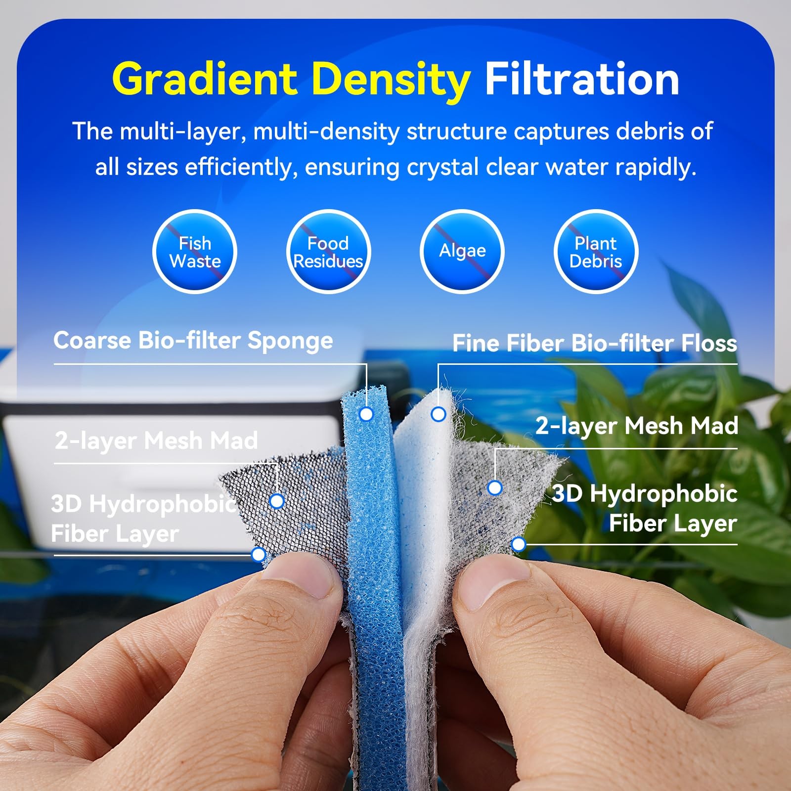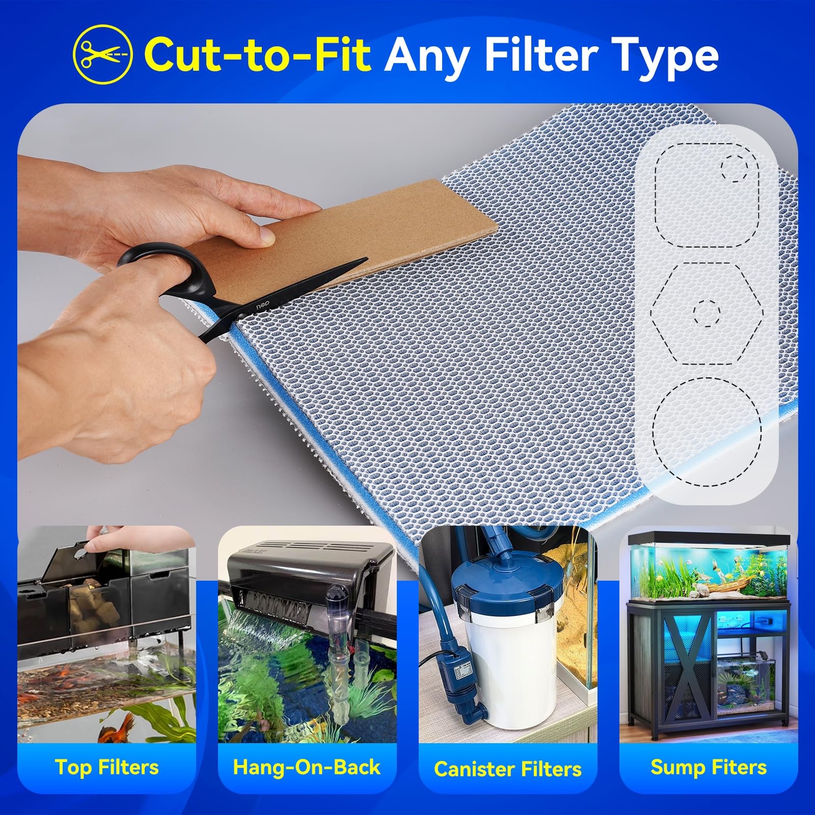 8-Layer Fast-Acting Aquarium Filter Pad - Cut-to-Size Aquarium Floss Media fo...