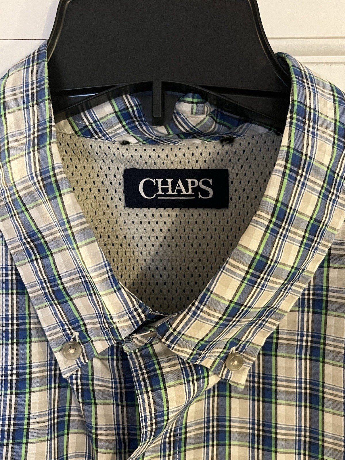 как выглядит Mens Chaps Performance Moisture Wicking Button Up Short Sleeve Shirt XL фото