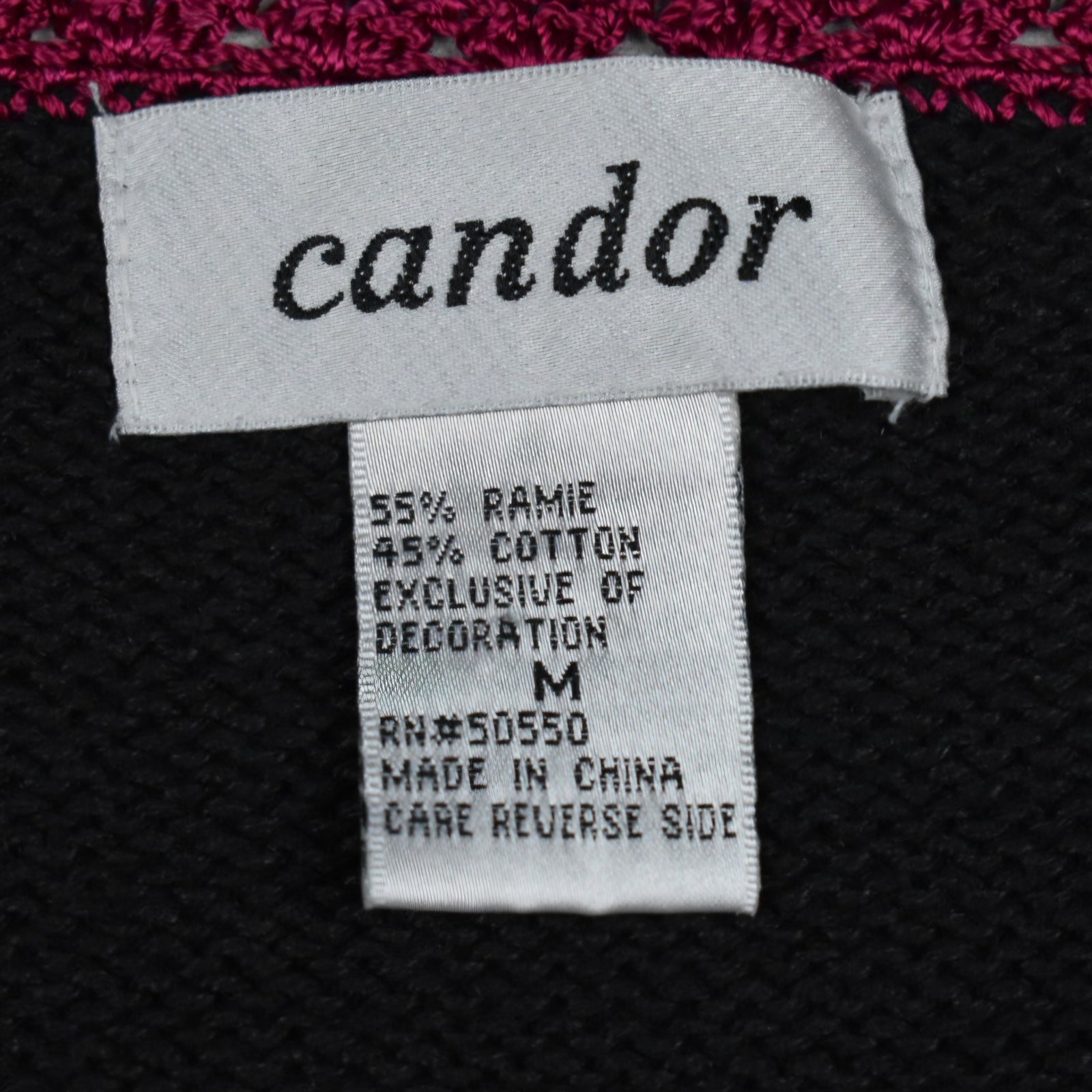 как выглядит Vintage black/burgundy floral embroidered cardigan sweater size medium cottage фото