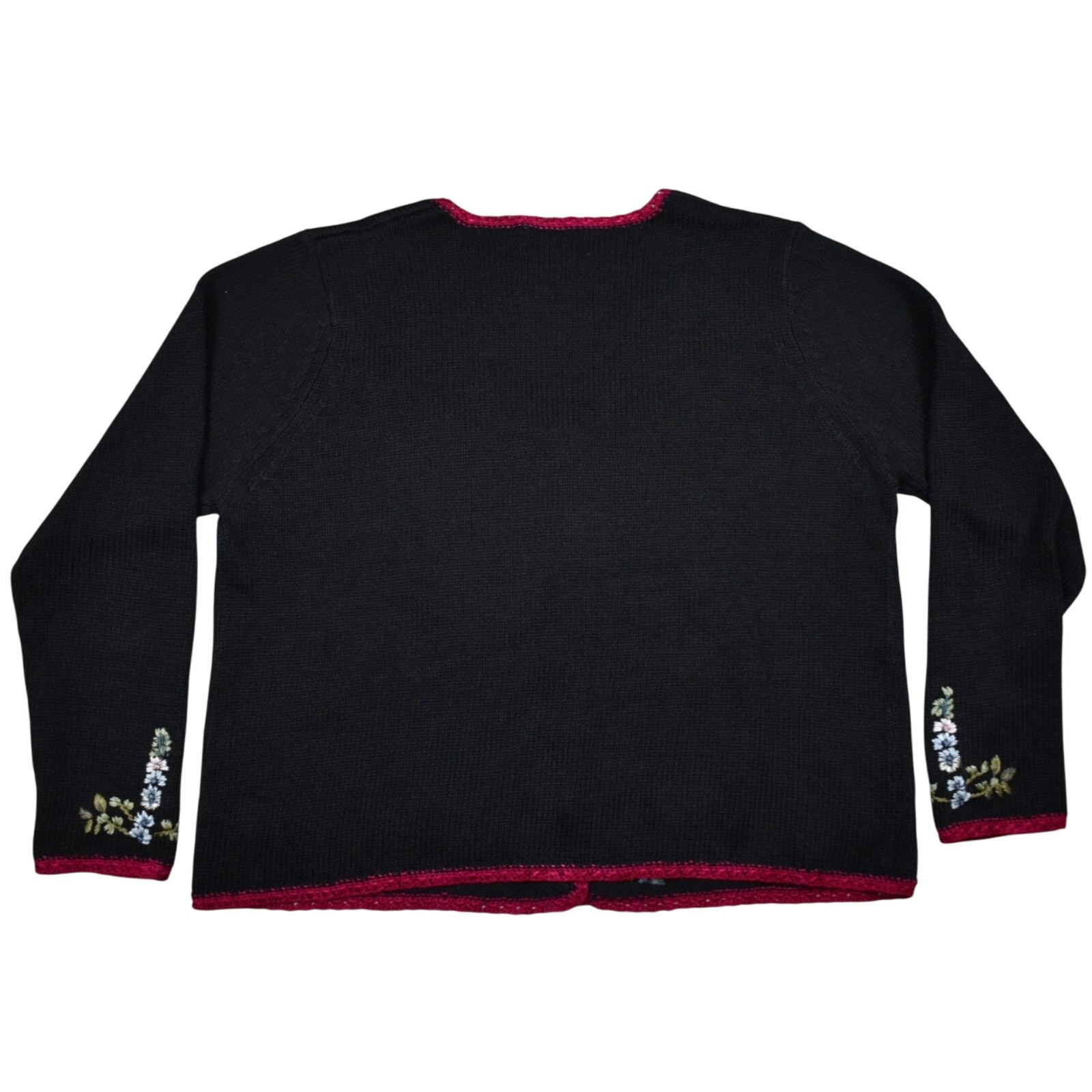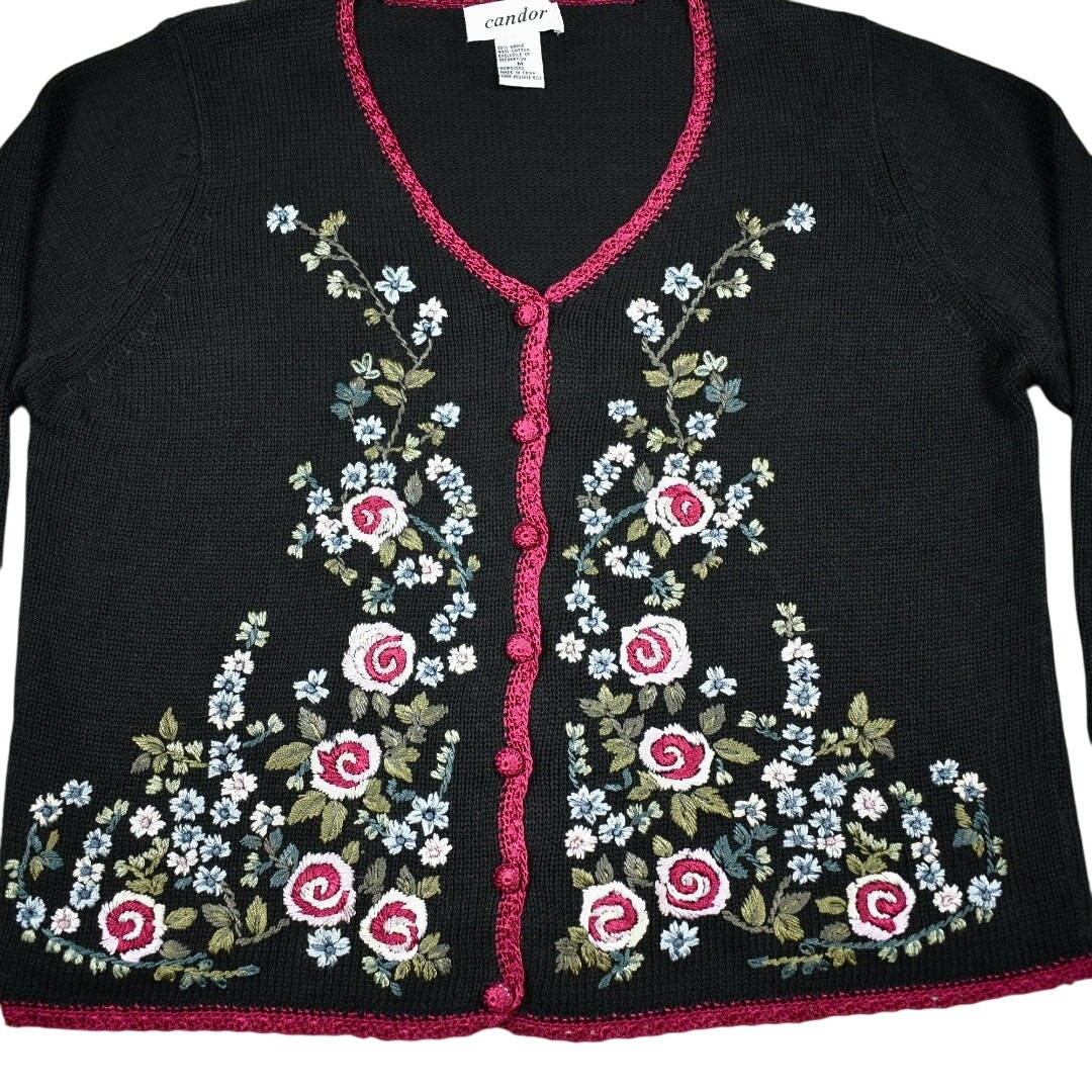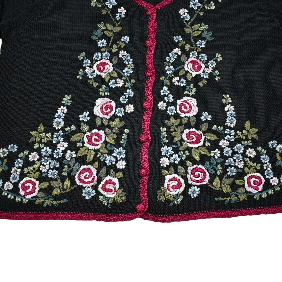 Vintage black/burgundy floral embroidered cardigan sweater size medium cottage