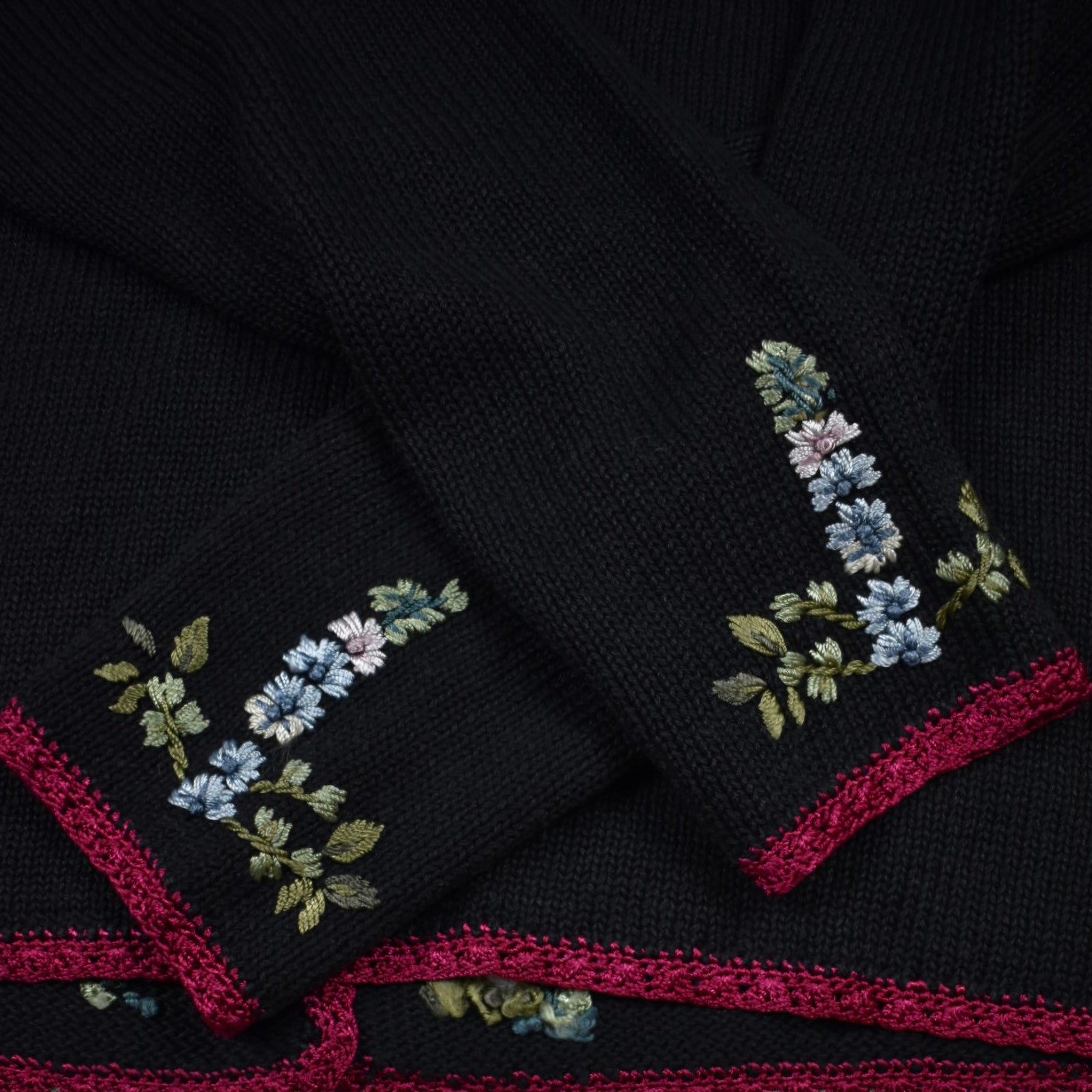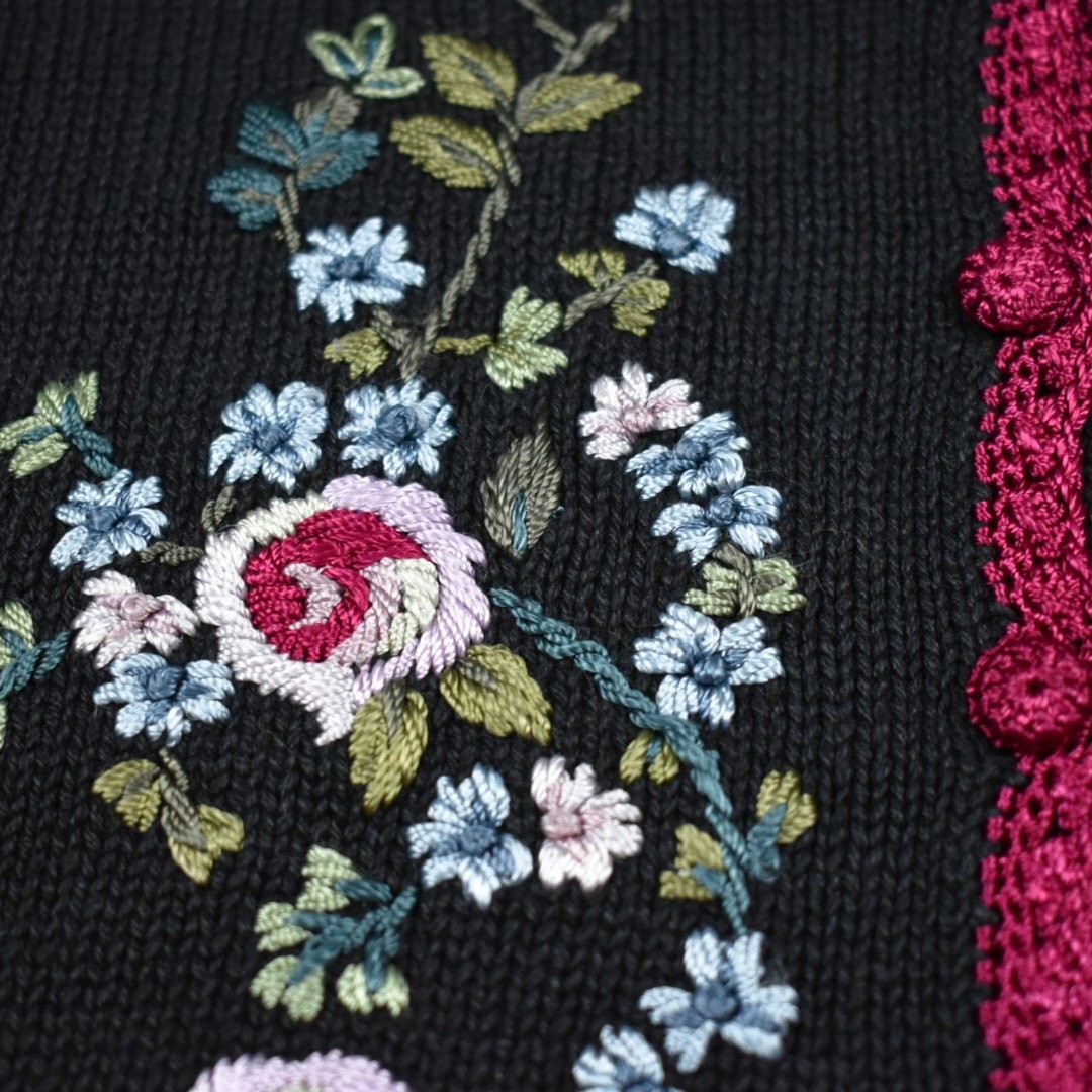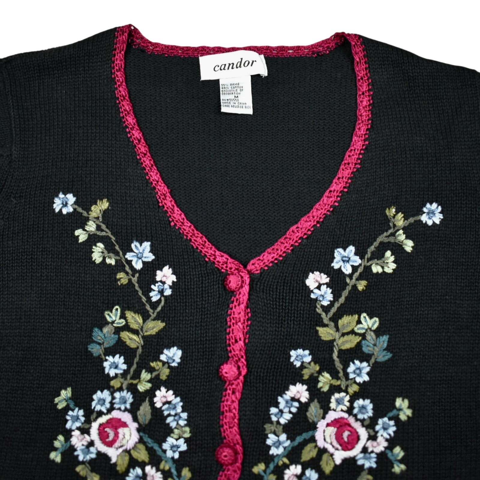 Vintage black/burgundy floral embroidered cardigan sweater size medium cottage