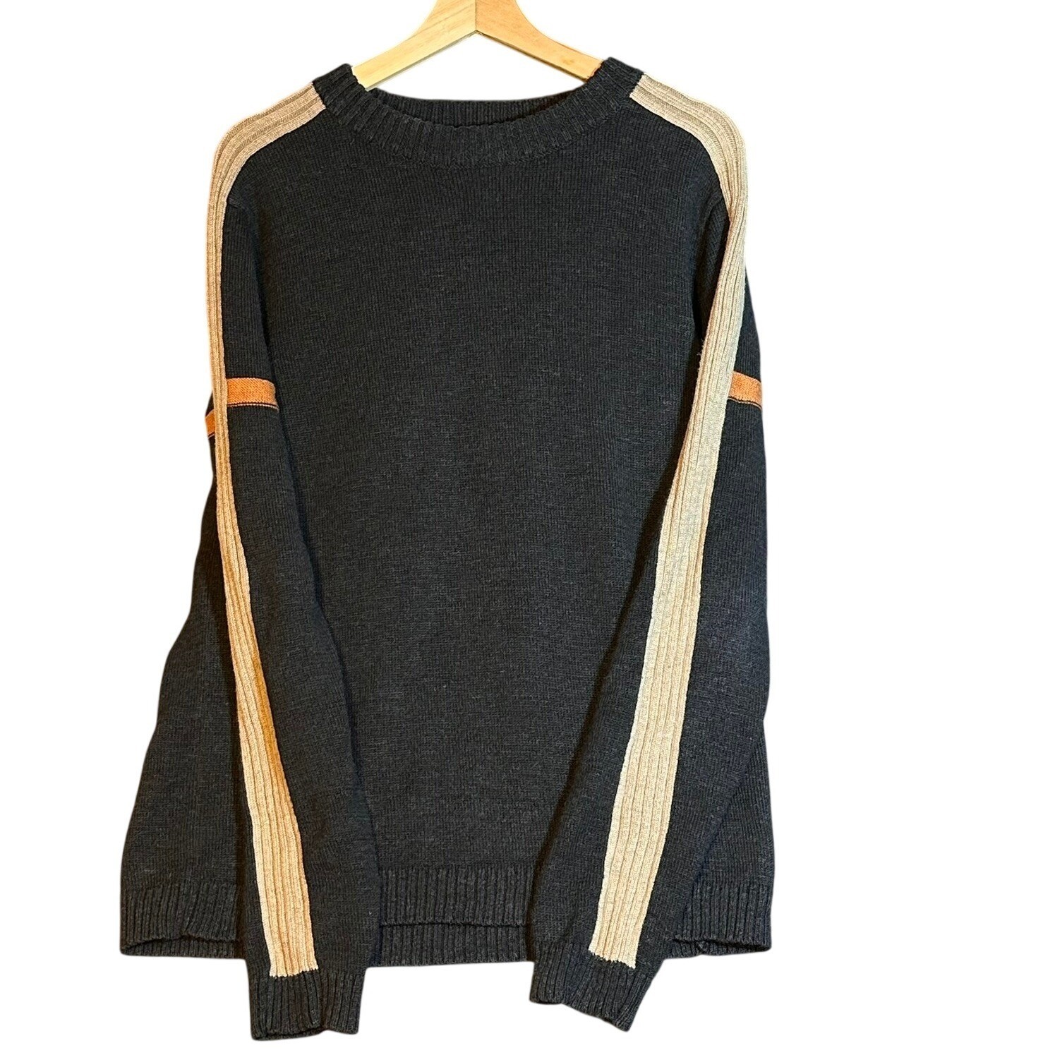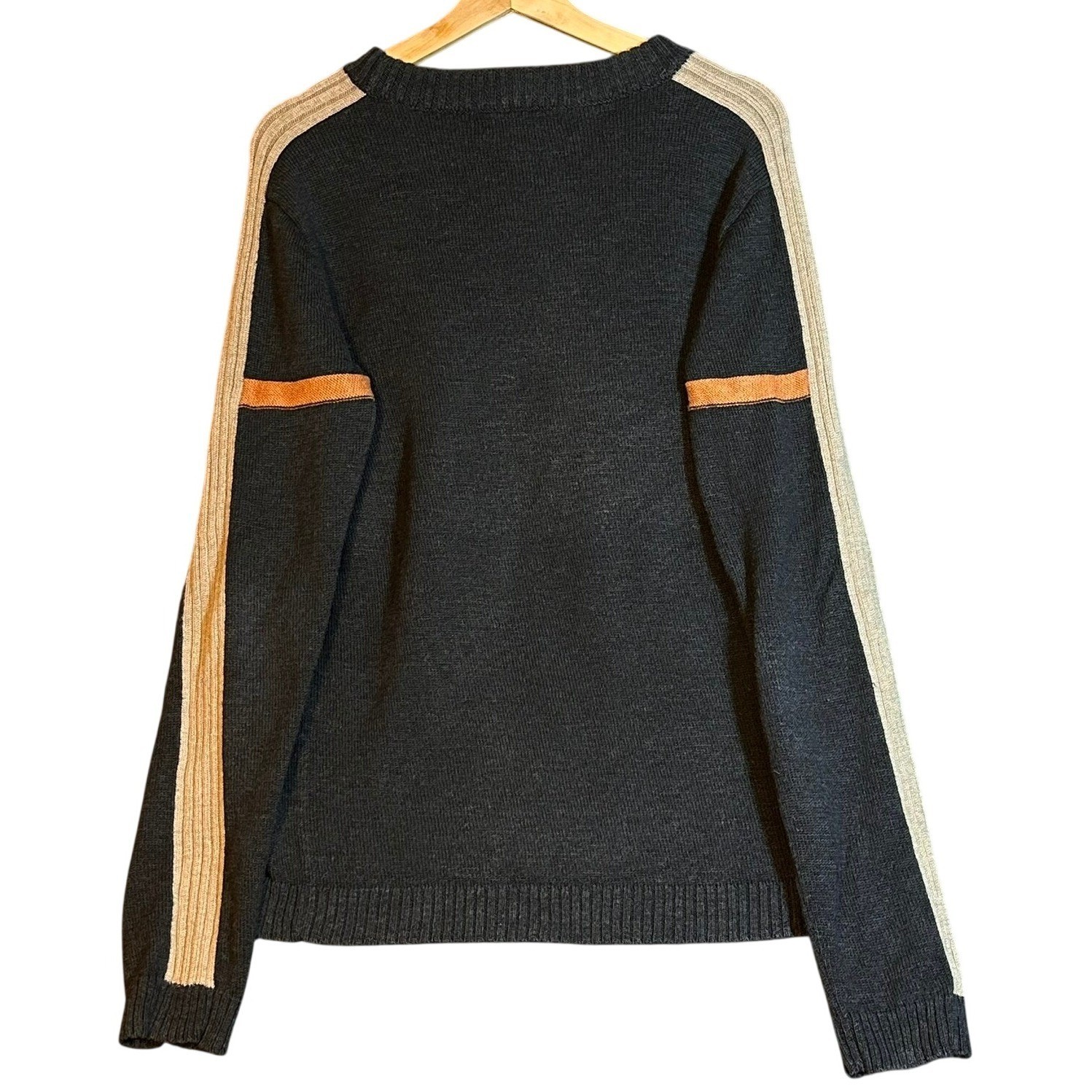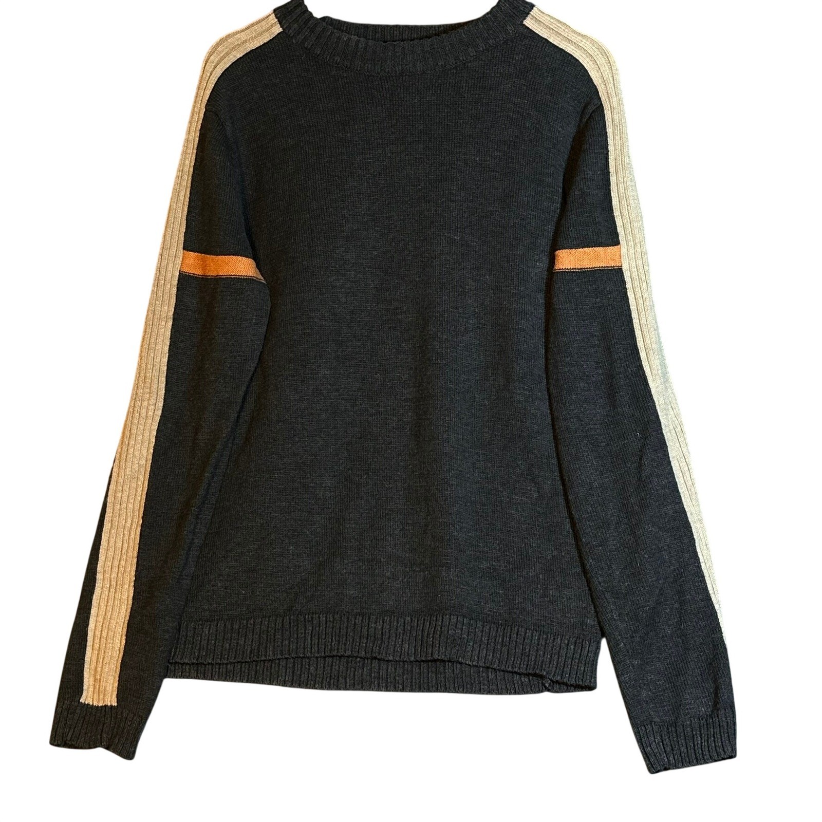 Of The Earth Hemp Wool Sweater Mens Medium Charcoal Gray Racing Stripe