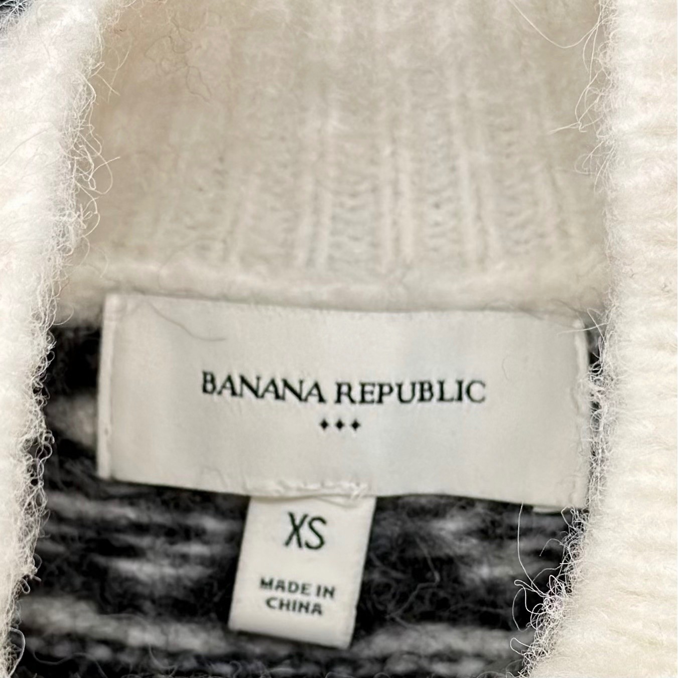 как выглядит Banana Republic Womens XS Fair Isle Wool Blend Mock Neck Sweater Black White фото