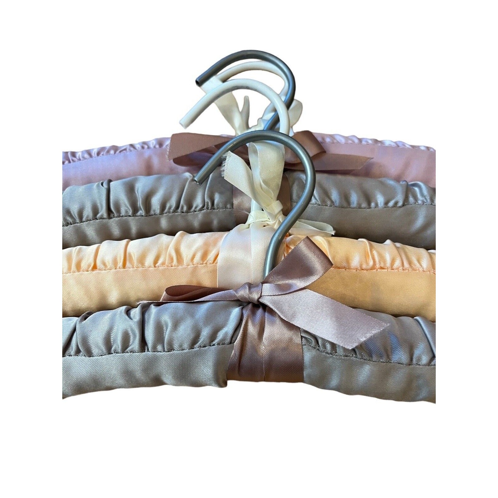 Lot of 4 Vintage Pastel Padded Satin Fabric Covered Hangers Ribbon