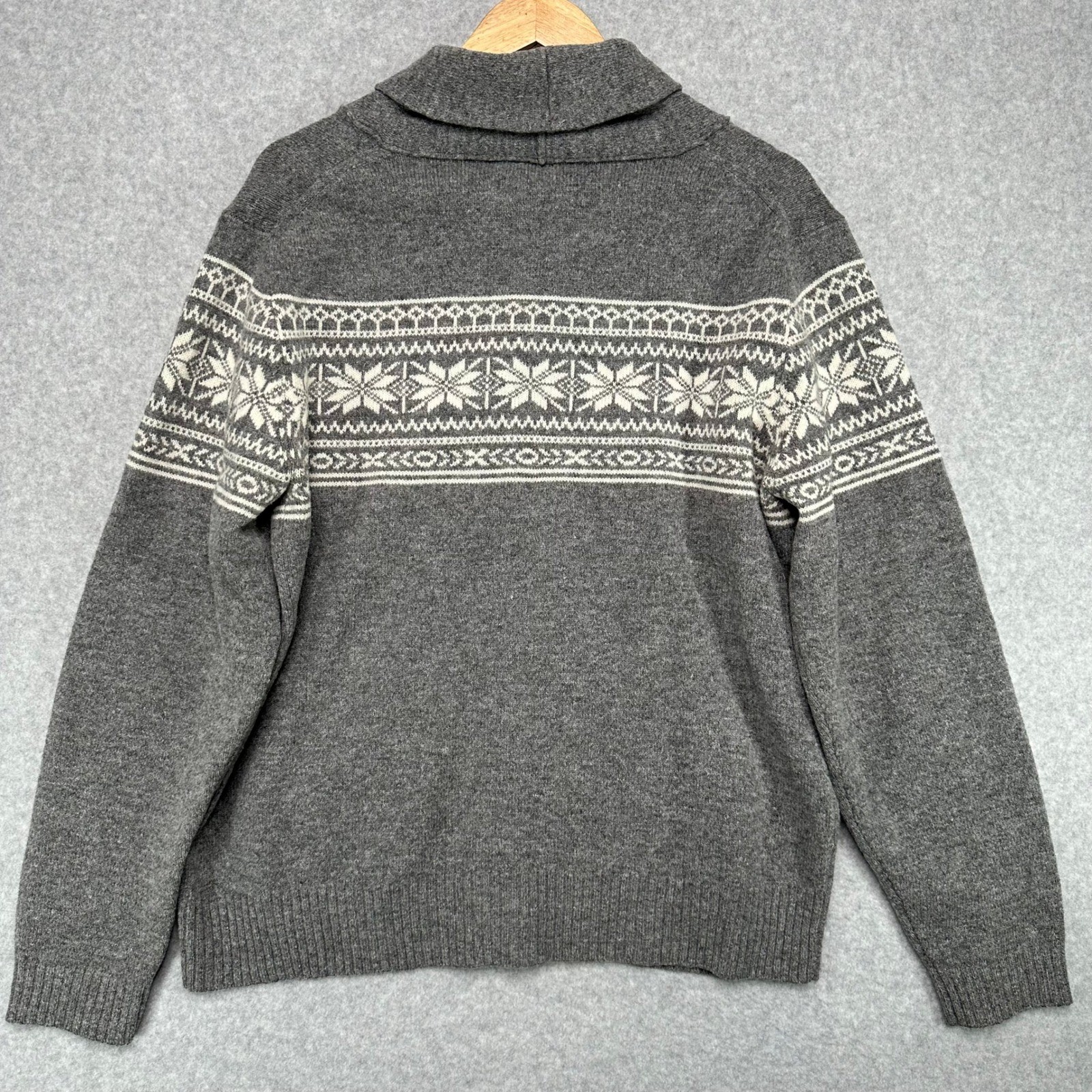 как выглядит J Crew Mens Gray Fair Isle Shawl Collar Cardigan Sweater Lambswool Size L NEW фото