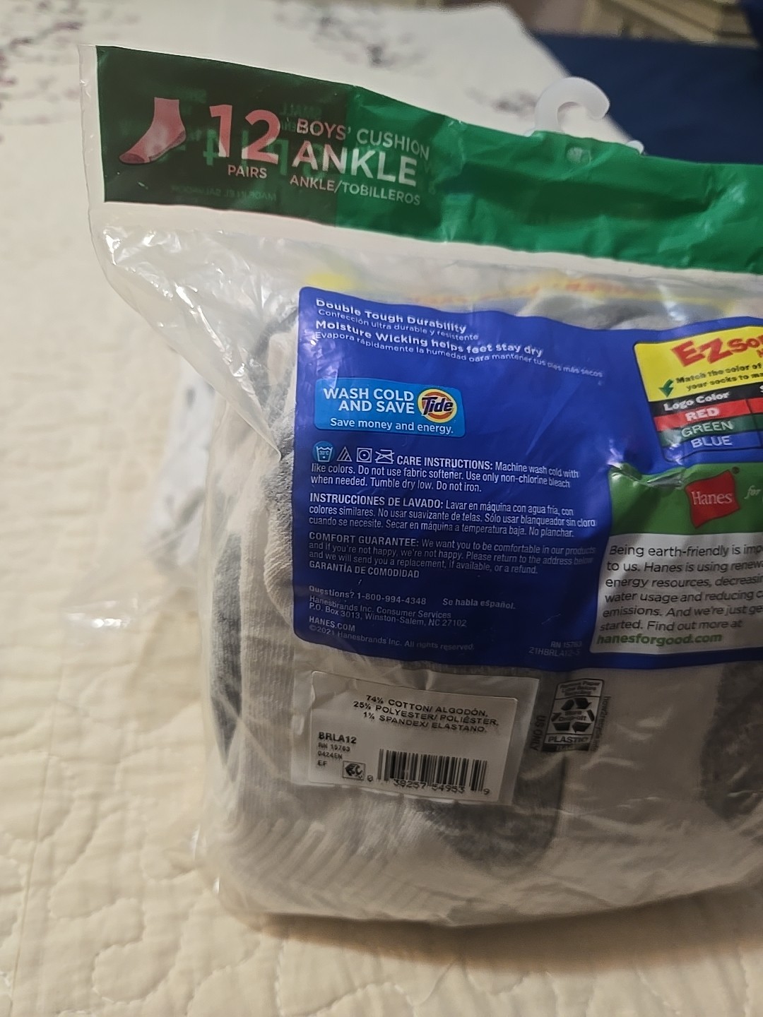 Особенности: EZ Sort Sock Matching, Spandex Throughout, Comfort Blend Technology, Soft And Durable