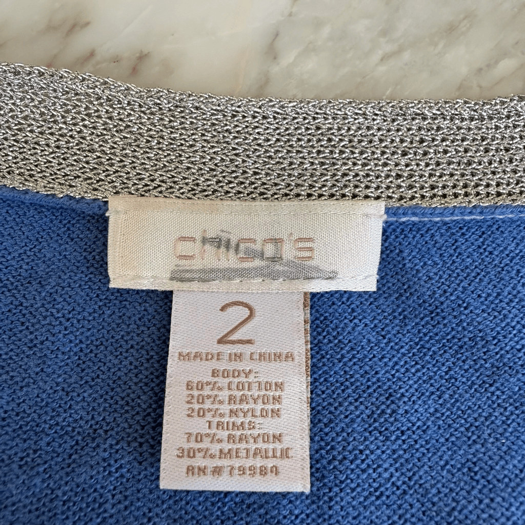 Chico's Ombre Shine Peyton Cardigan Nikko Blue blue-to-grey metallic trim sz L