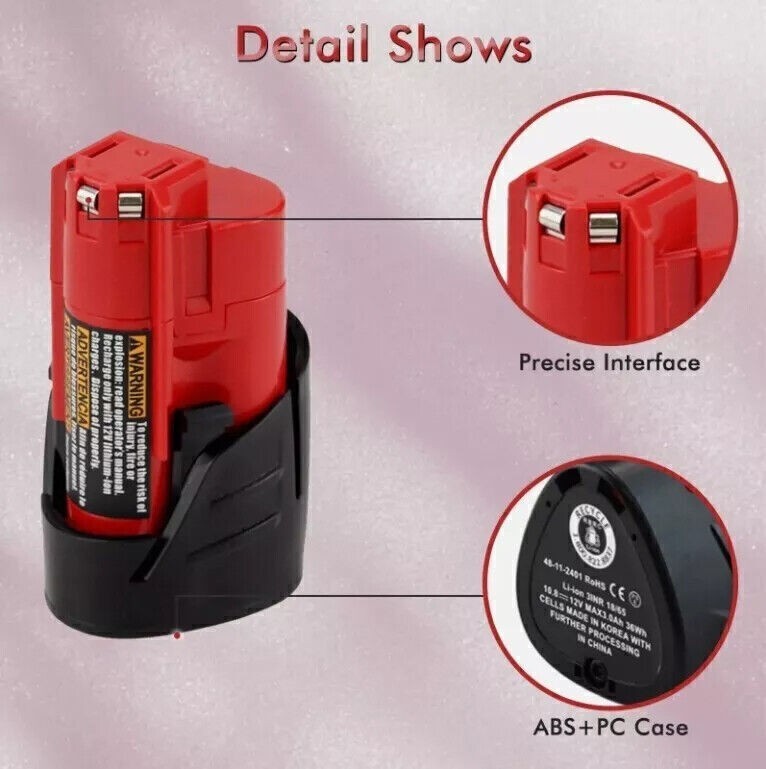 2 PACK 12V 3.0AH for Milwaukee 12V M12 3.0Ah Compact Battery 48-11-2430