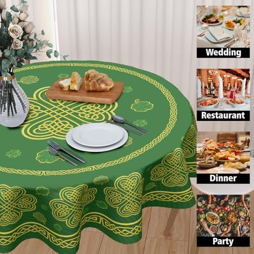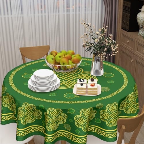 St. Patrick's Day Round Tablecloth 60 Inch Leaf Clover 60 Round Green