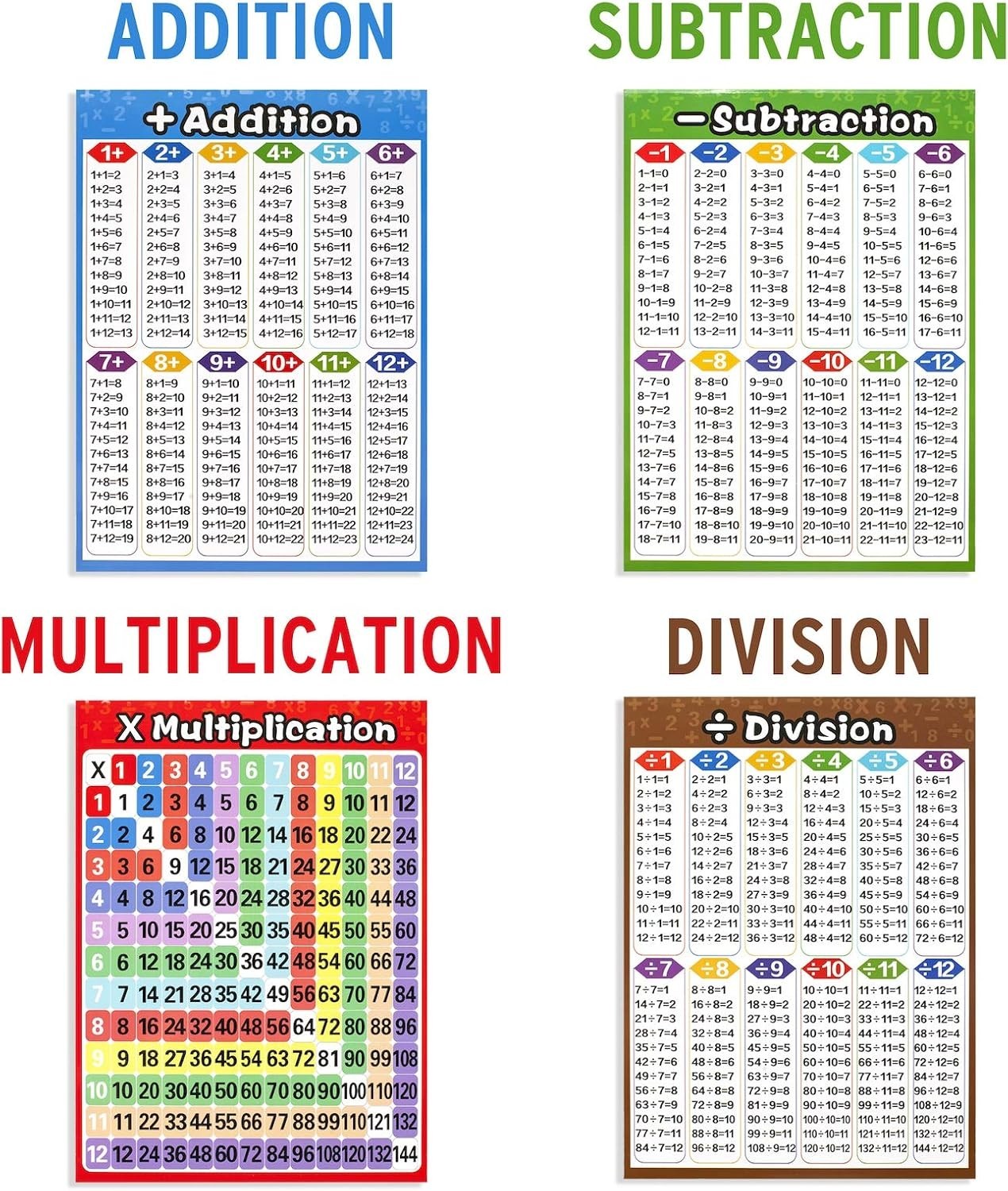 Math Educational Learning Posters,Laminated Charts with Tape for Children Kid...