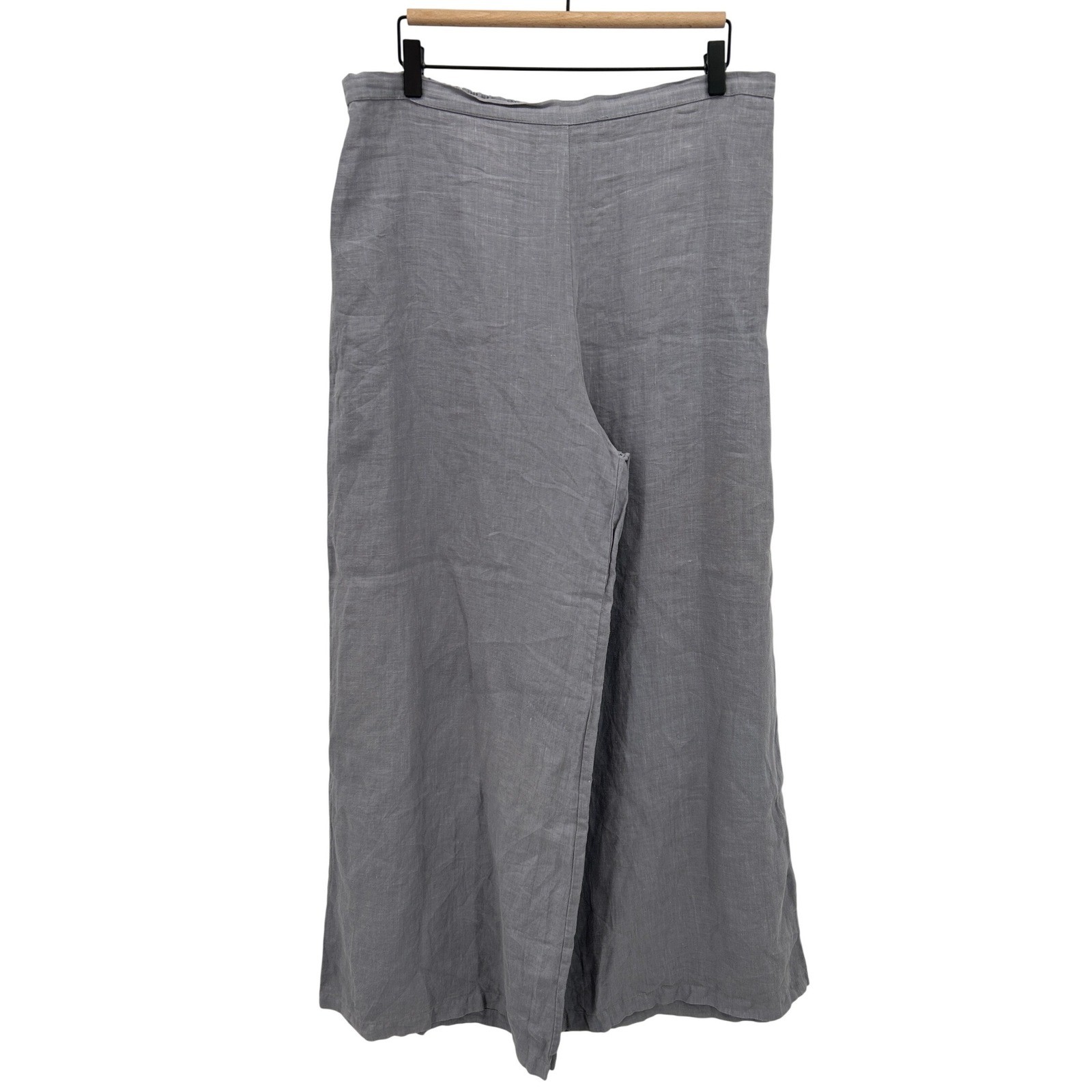как выглядит Bryn Walker Sz XL Grey Linen Wide Leg Pants Made in USA Casual Lagenlook Neutral фото