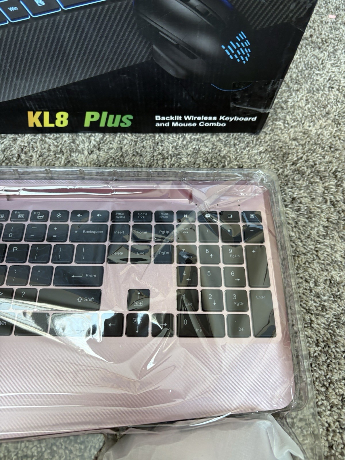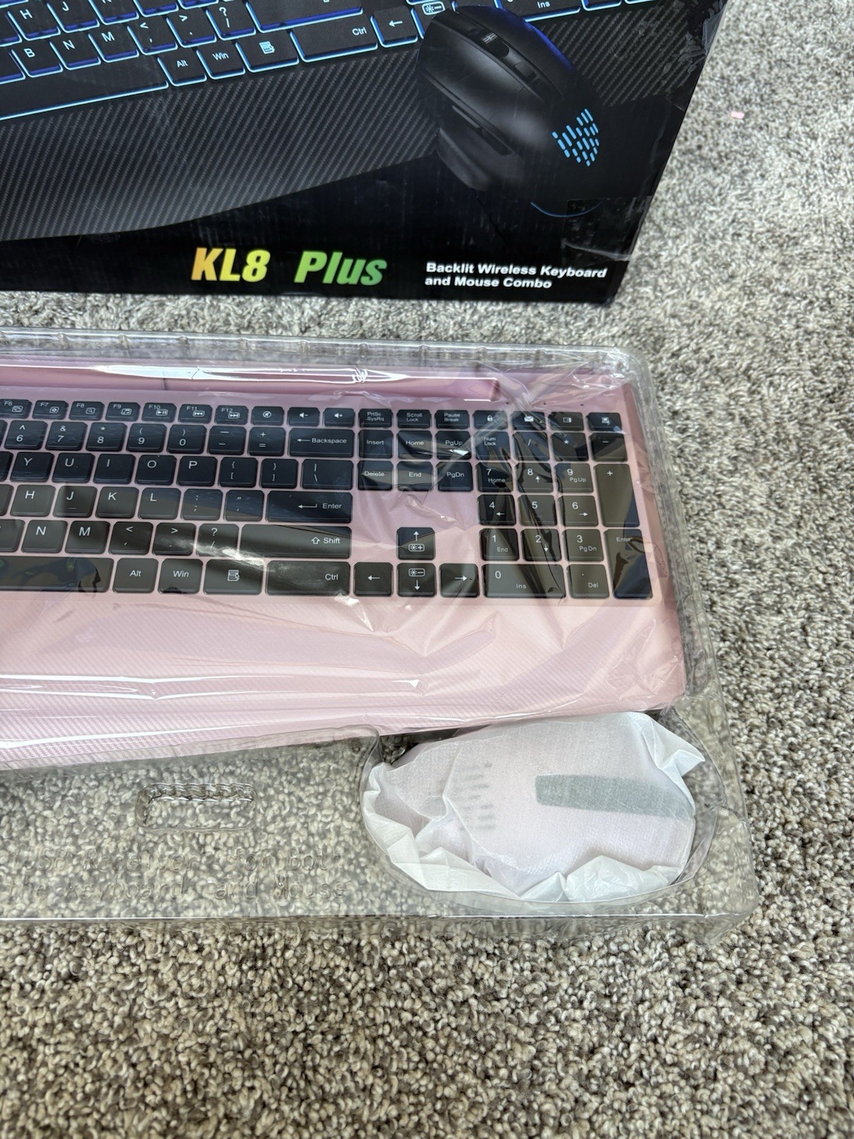 Wireless Keyboard Mouse Combo Rose Gold Backlit Ergonomic Silent