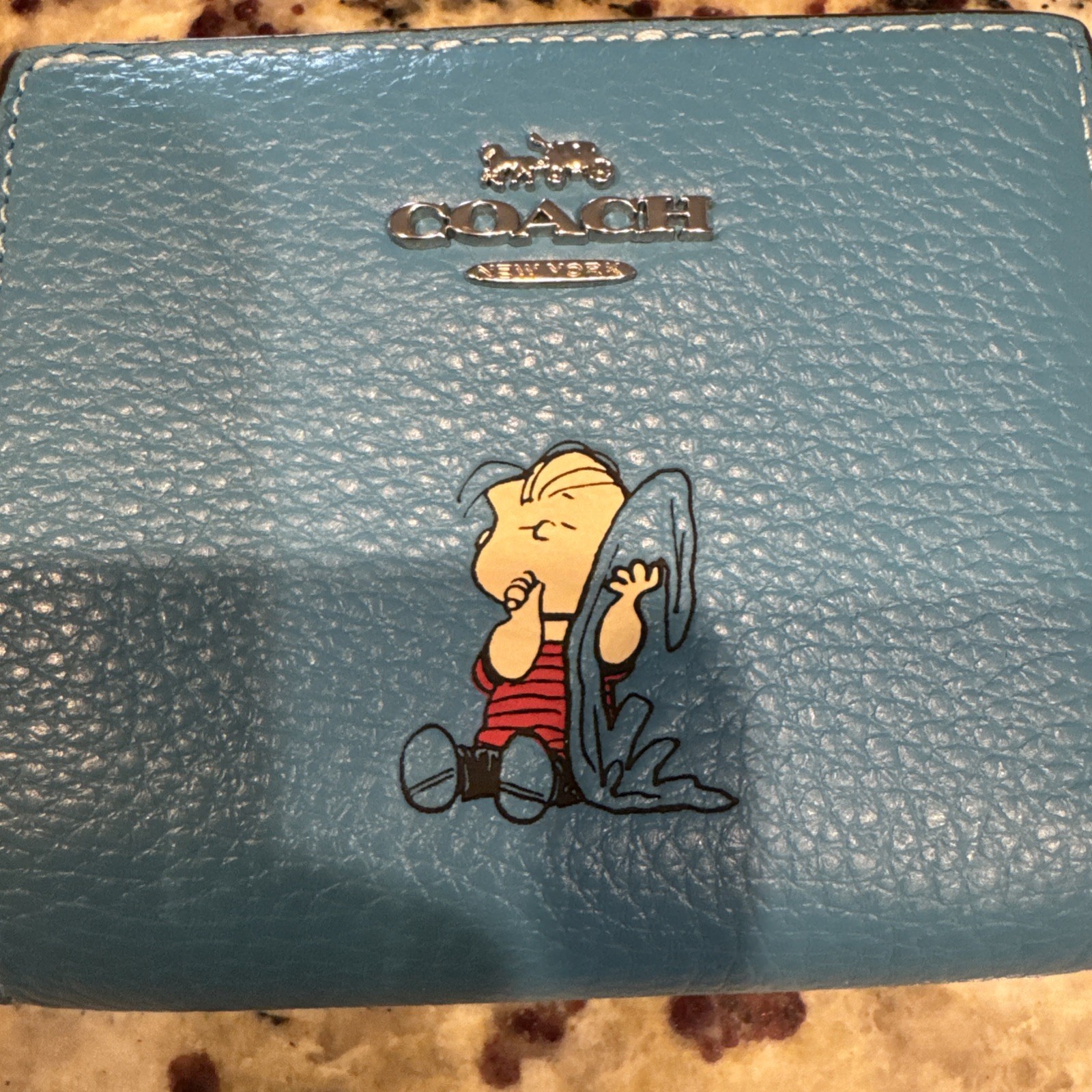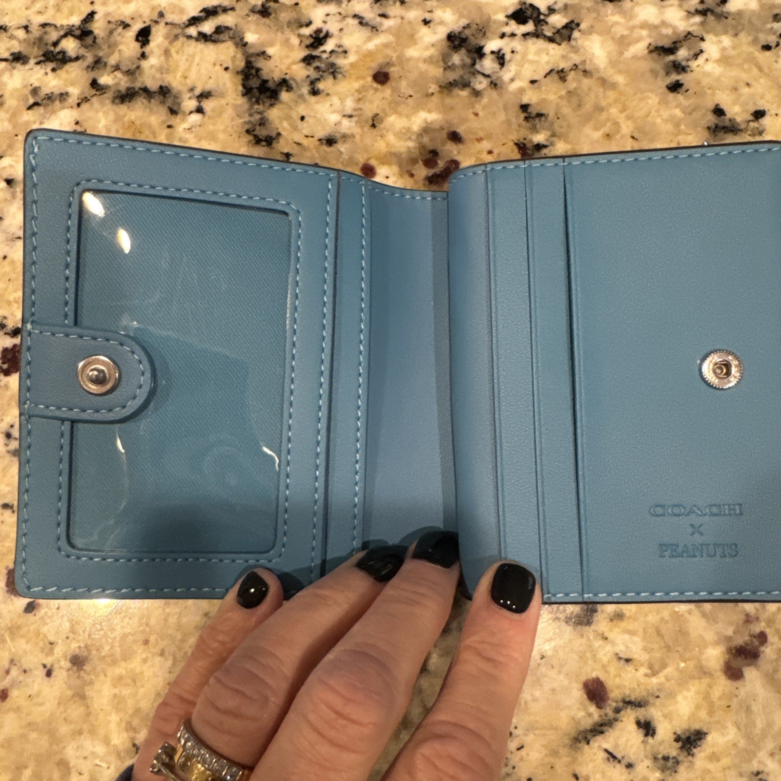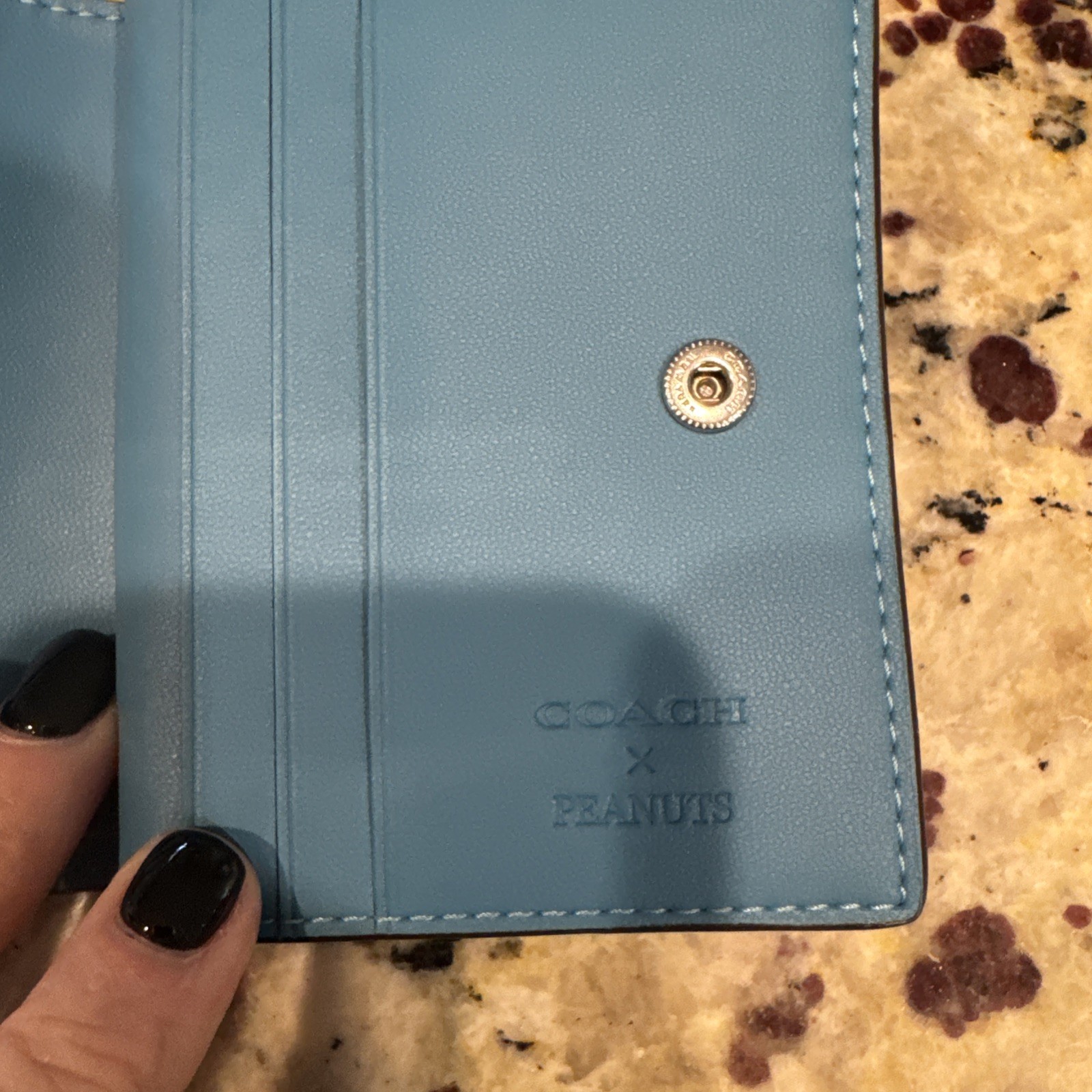 Coach x Peanuts 2025 Snap Wallet Linus Snoopy 75th Anniversary Blue NWT