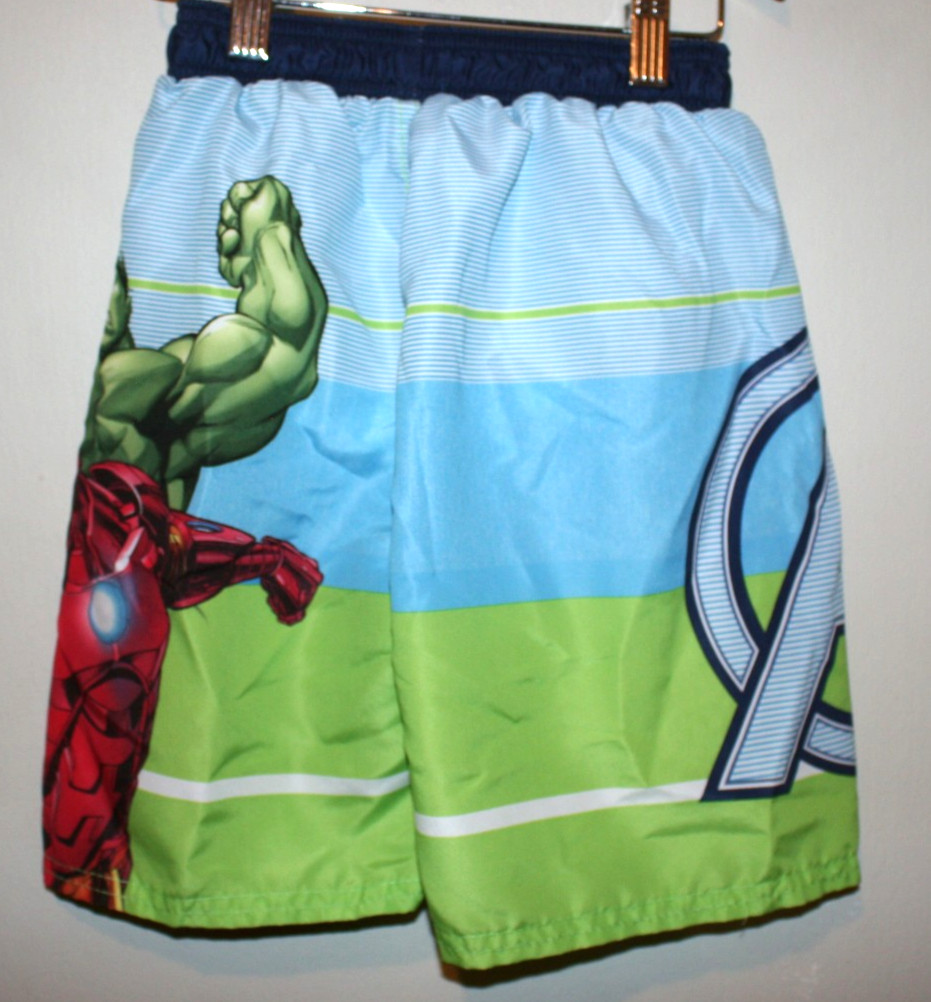 Boys Marvel Avengers Hulk Captain America Iron Man Swim Trunks Blue Green 5/6