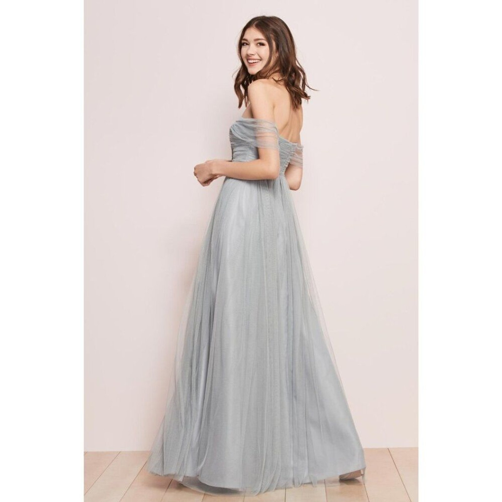 как выглядит Long Off Shoulder Tulle Bridesmaid Dress. French Blue. Size 12 фото