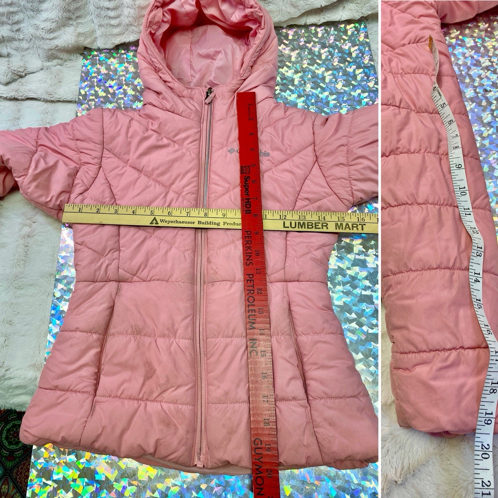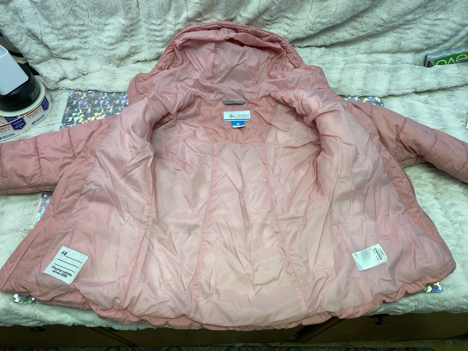 Columbia Girls Puffer Hooded Jacket Coat Pink Insulated Winter SMALL 7-8 FLAWS