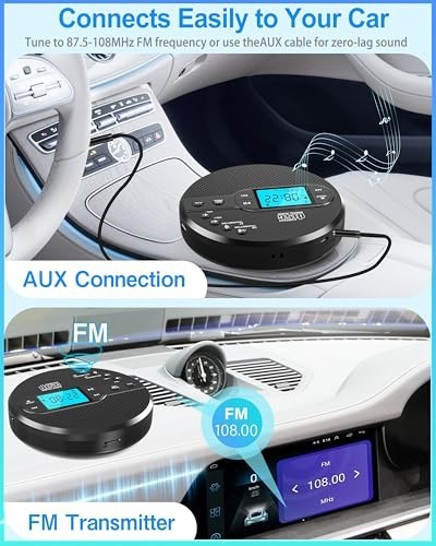 Portable Bluetooth CD Player for Car, Rechargeable Discman with FM Transmitter,