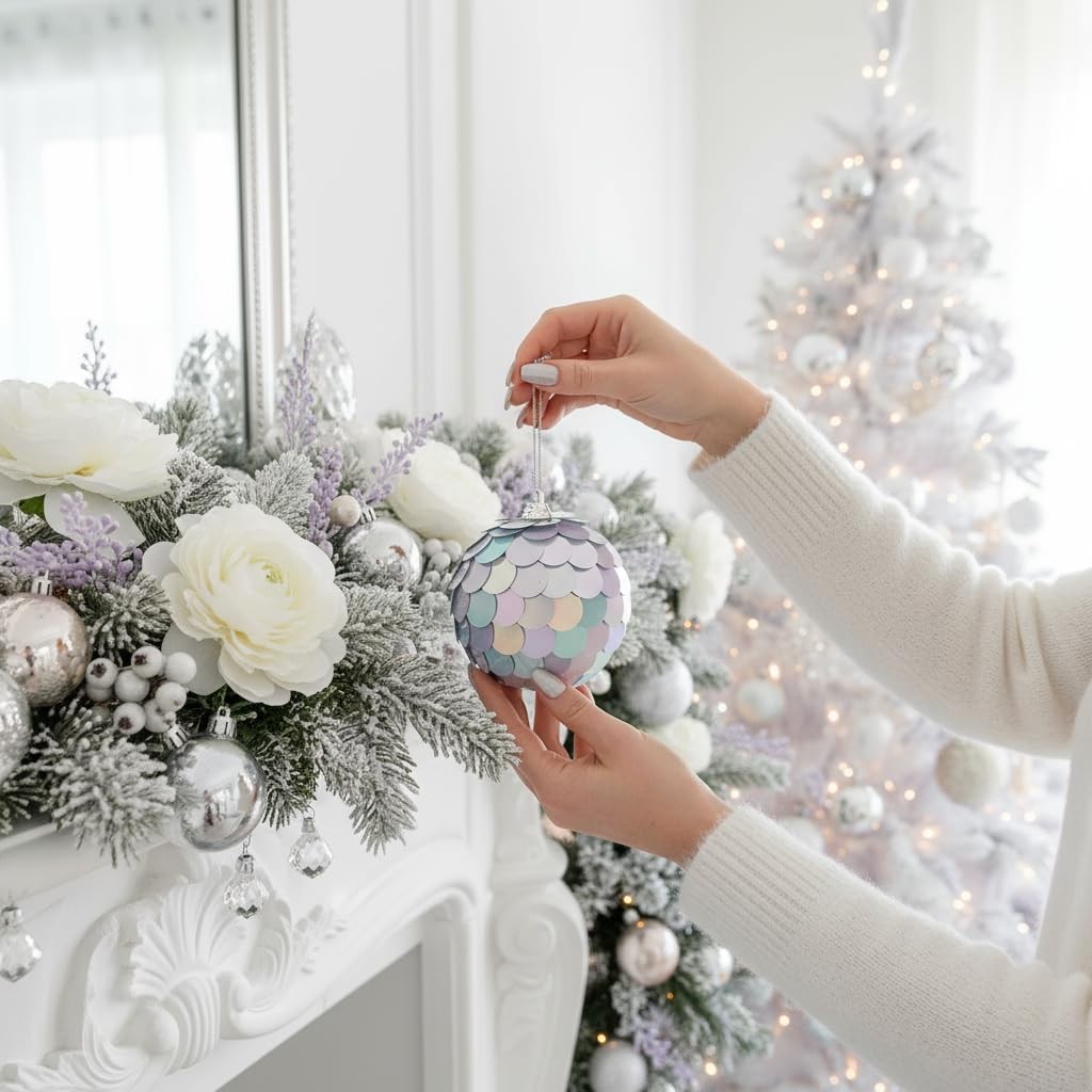 Christmas Tree Decorations Ornament,Reflective Paillette Xmas Decor, 4PCS Iri...