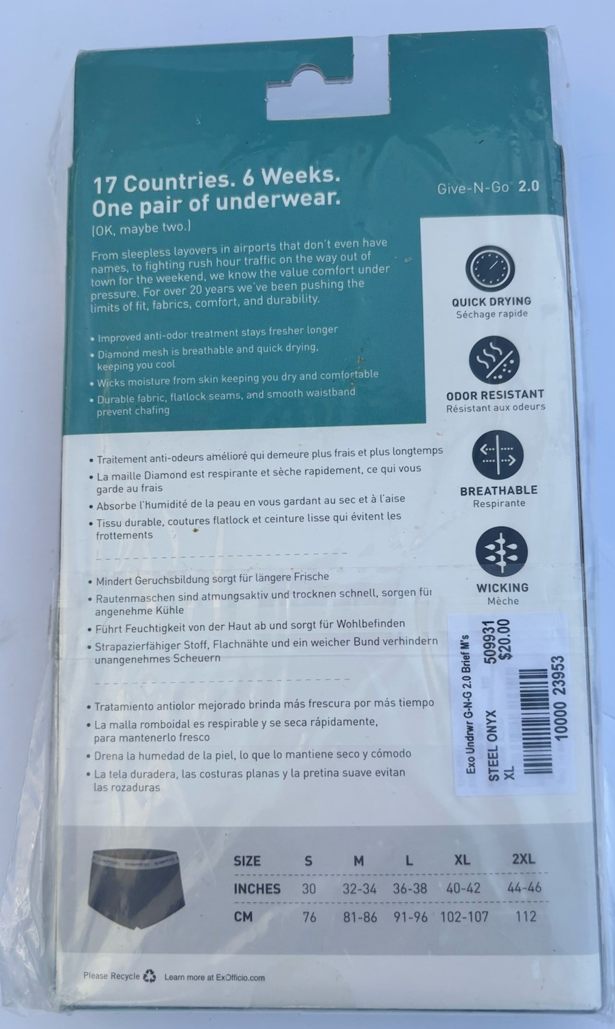 как выглядит Exofficio Give-N-Go 2.0 Brief Steel Onyx Mens Underwear Size XLARGE XL NIB фото
