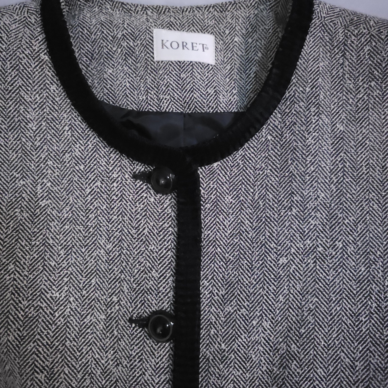 как выглядит Vintage Herringbone Blazer Jacket Koret Black White VELVET Trim Academia Goth 14 фото