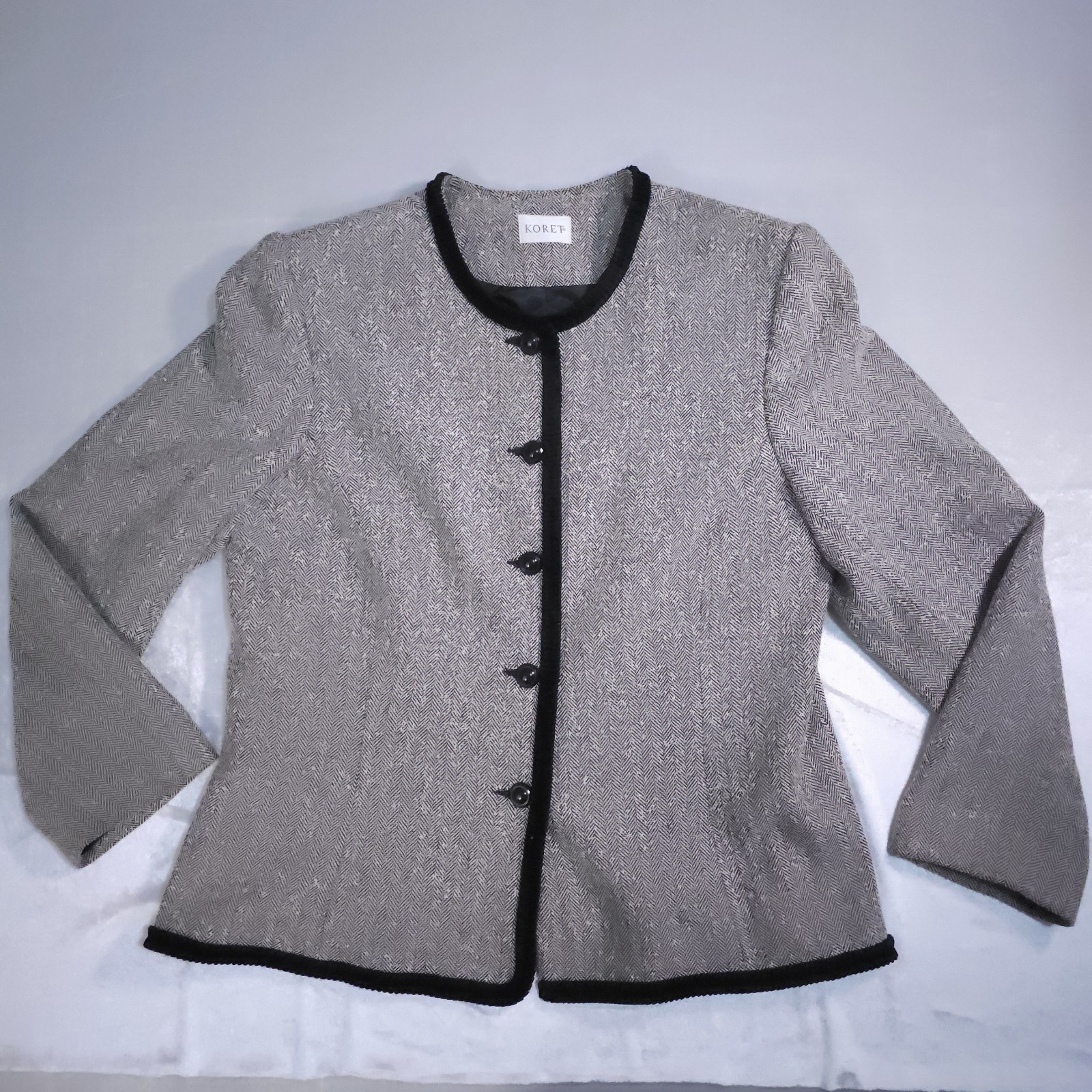 Vintage Herringbone Blazer Jacket Koret Black White VELVET Trim Academia Goth 14