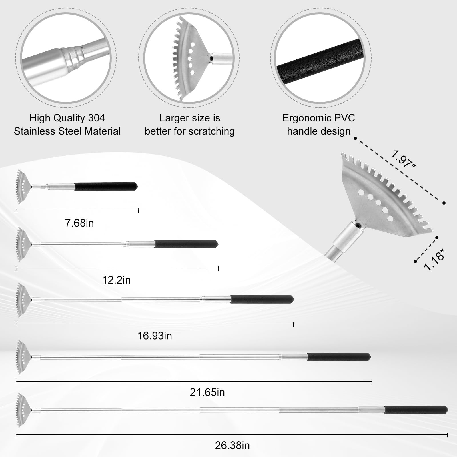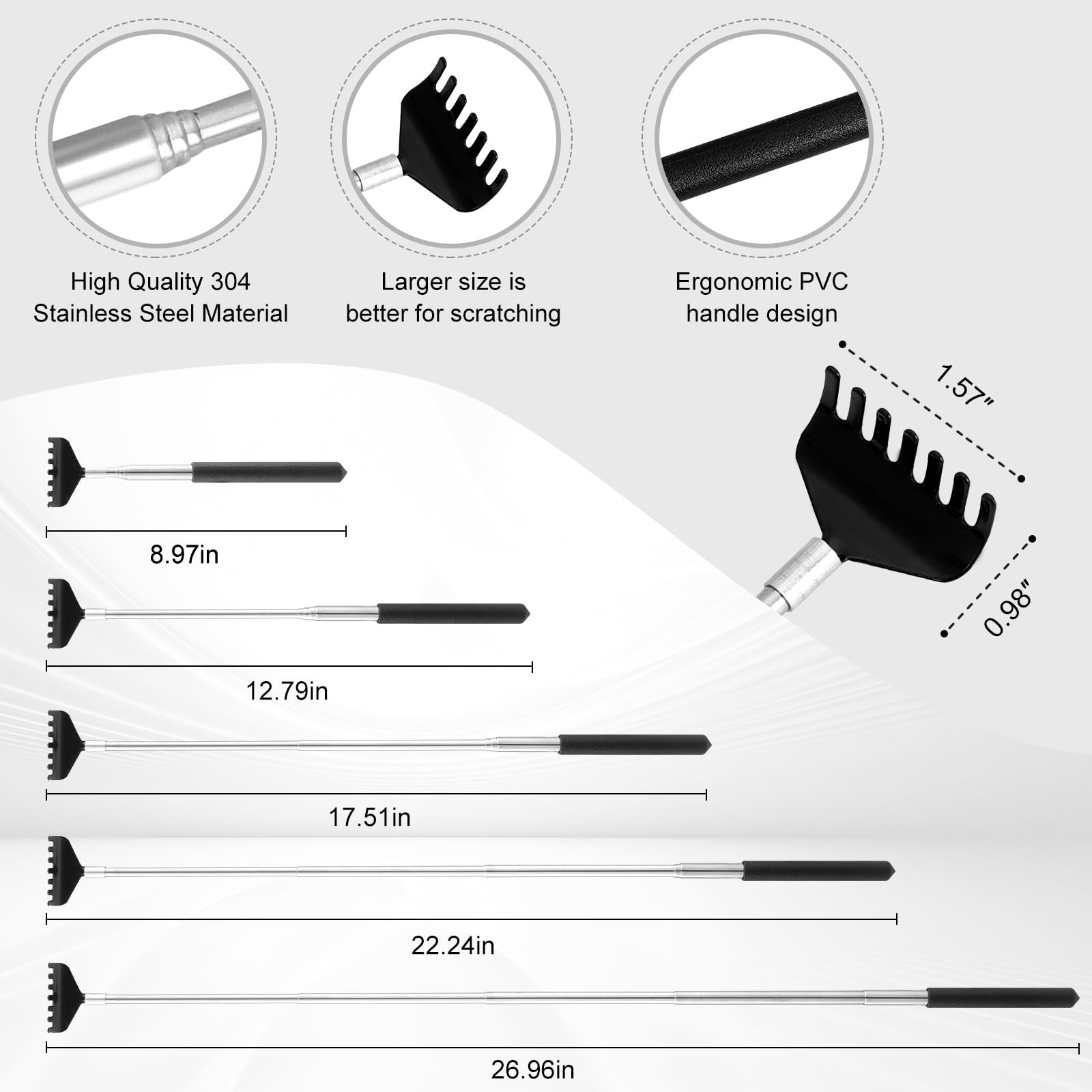 4 Pack Telescoping Back Scratchers with Rubber Handles - Portable Massager