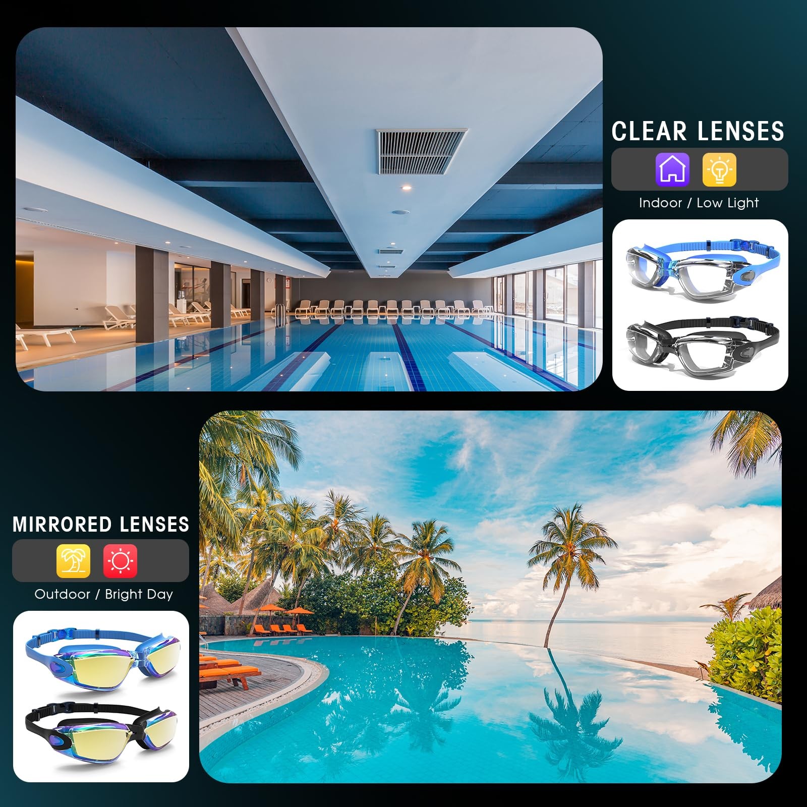Swim Goggles, 2-Pack Swimming Goggles, Anti Fog, No Leaking For Adult Women Men