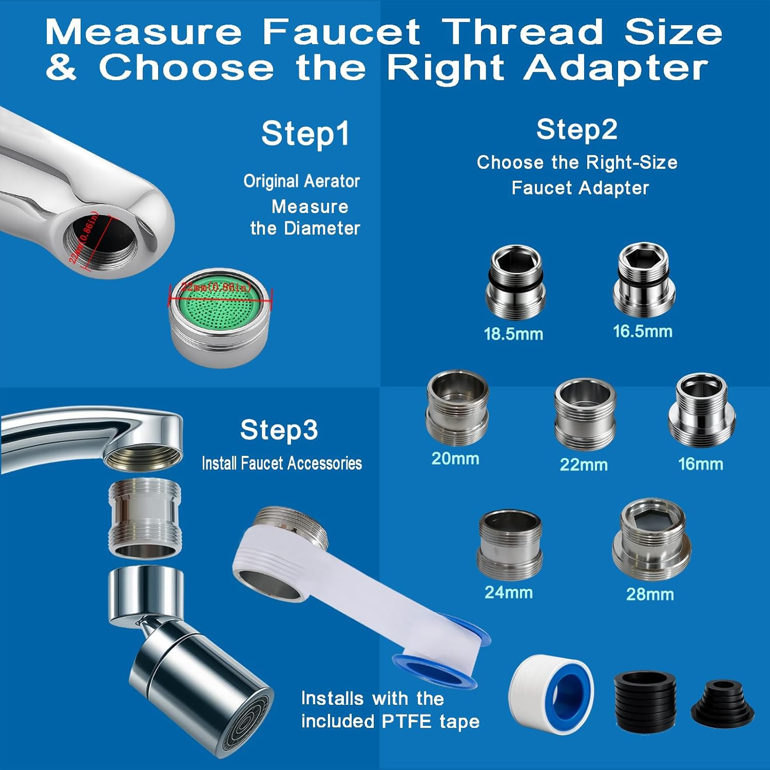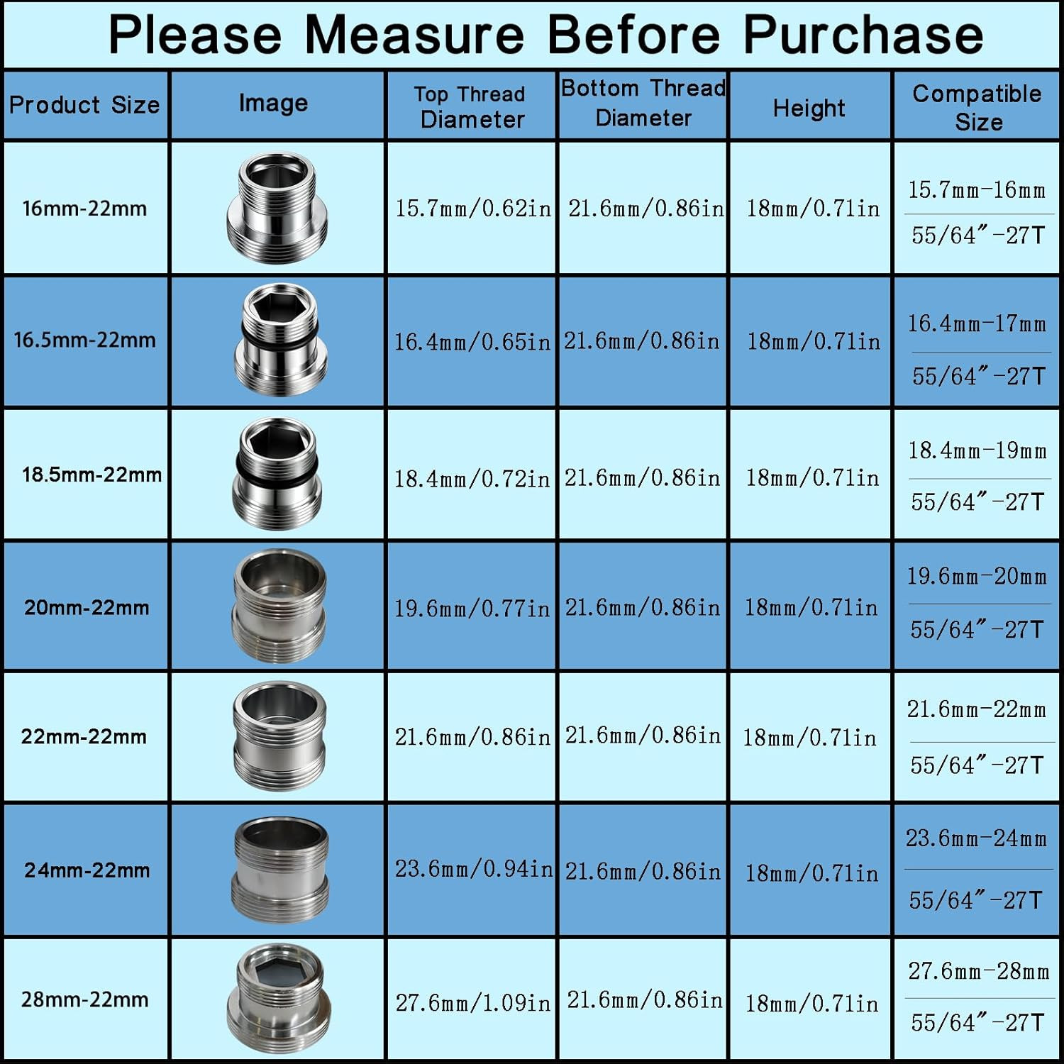 7 Pieces Faucet Adapter Kit, Sink Adapter for Faucet, Male Thread M16, M16.5, M1