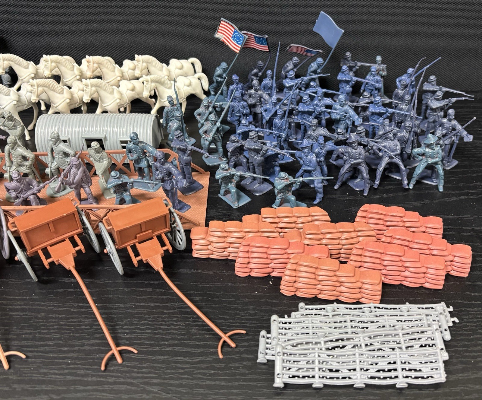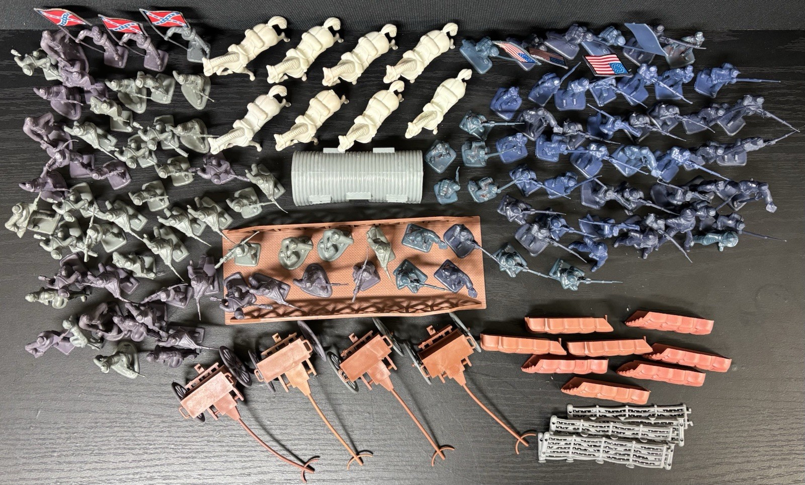 lot of Civil War Toy Army Men Horses, Carts, and Flags