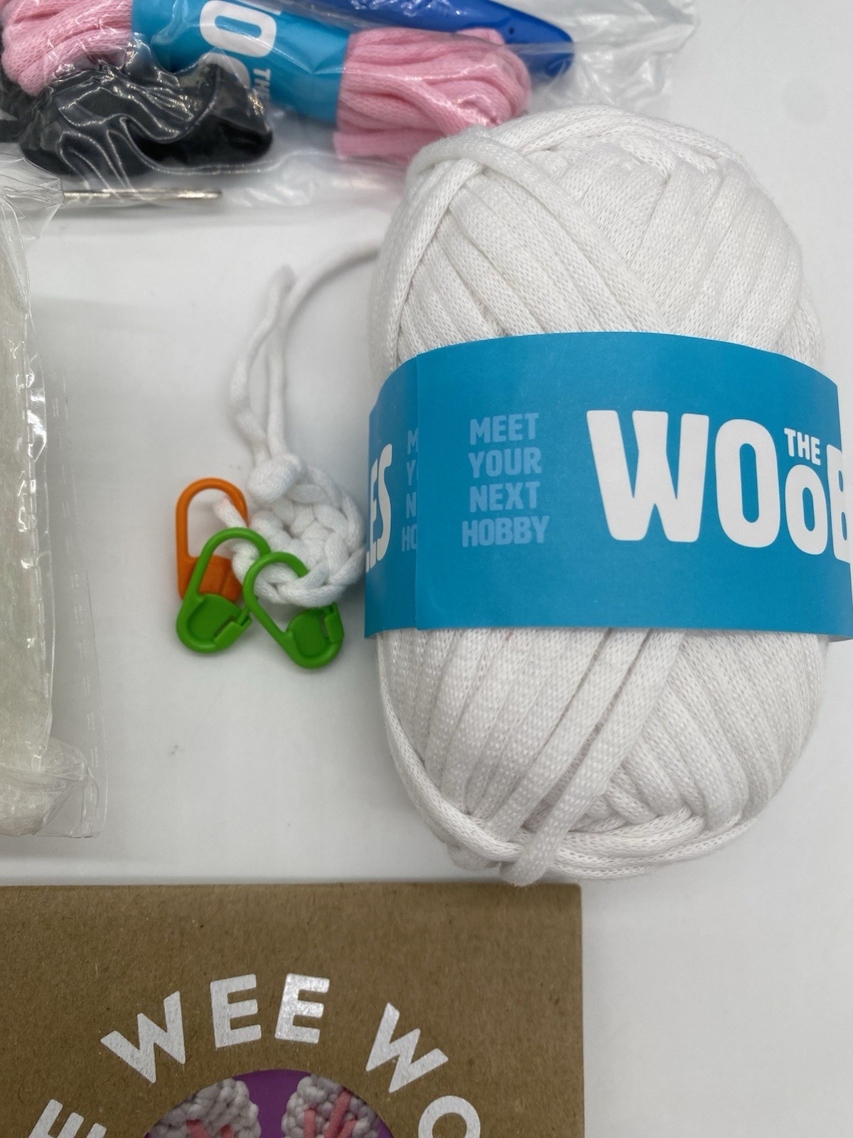 The Woobles Beginner Crochet Kit JoJo the Bunny, Open small started piece