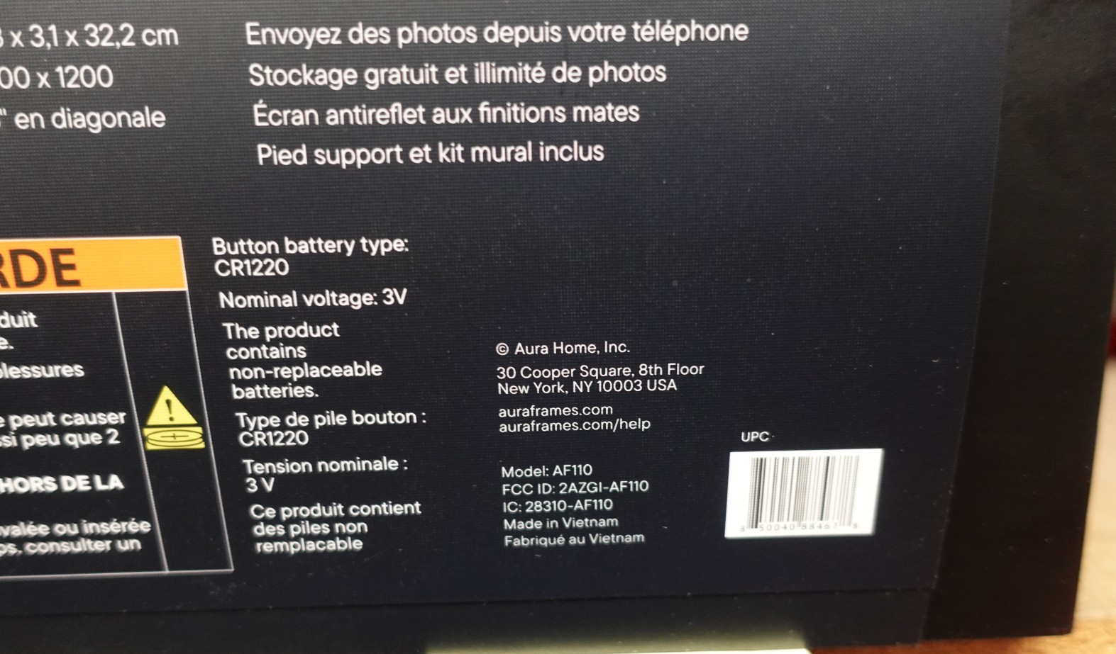 как выглядит Aura Walden Ink with Textured Mat 15" Digital Picture Frame, Black, Model: AF110 фото