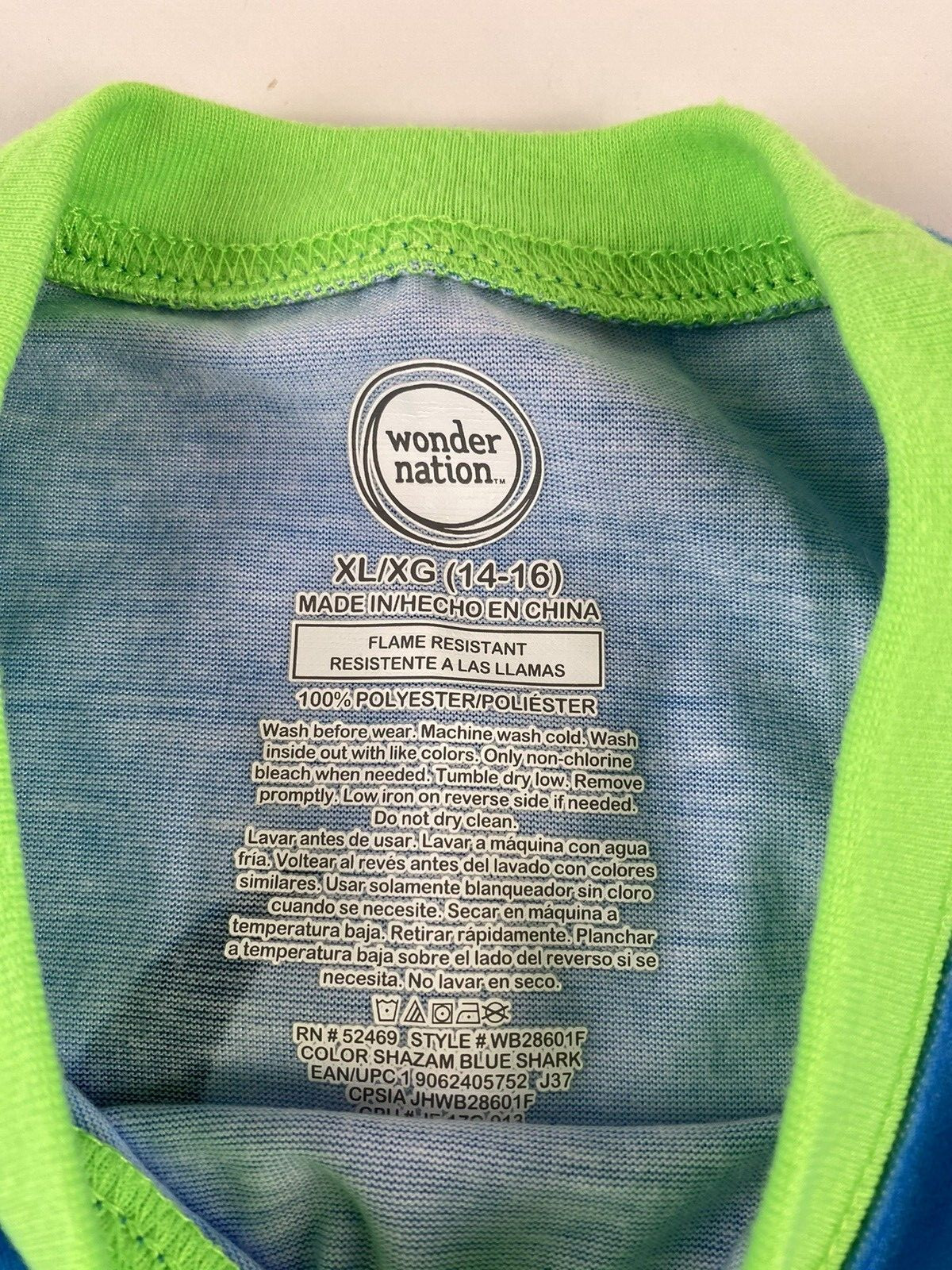 wonder nation unisex swim tops size XL extra large blue and green with shark