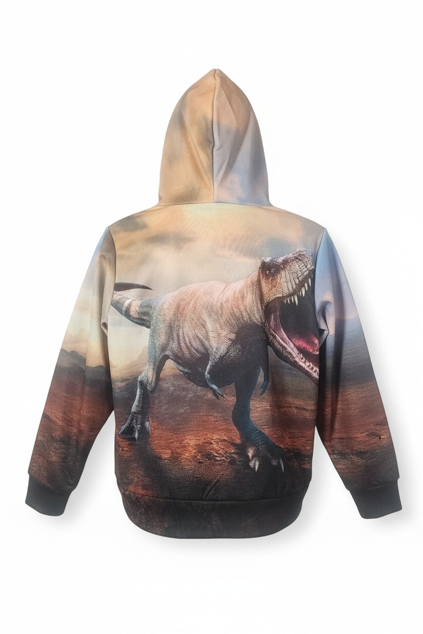 Boy's T REX Dinosaur Hoodie With Pockets Sweatshirt Back Front Print Size 8-10