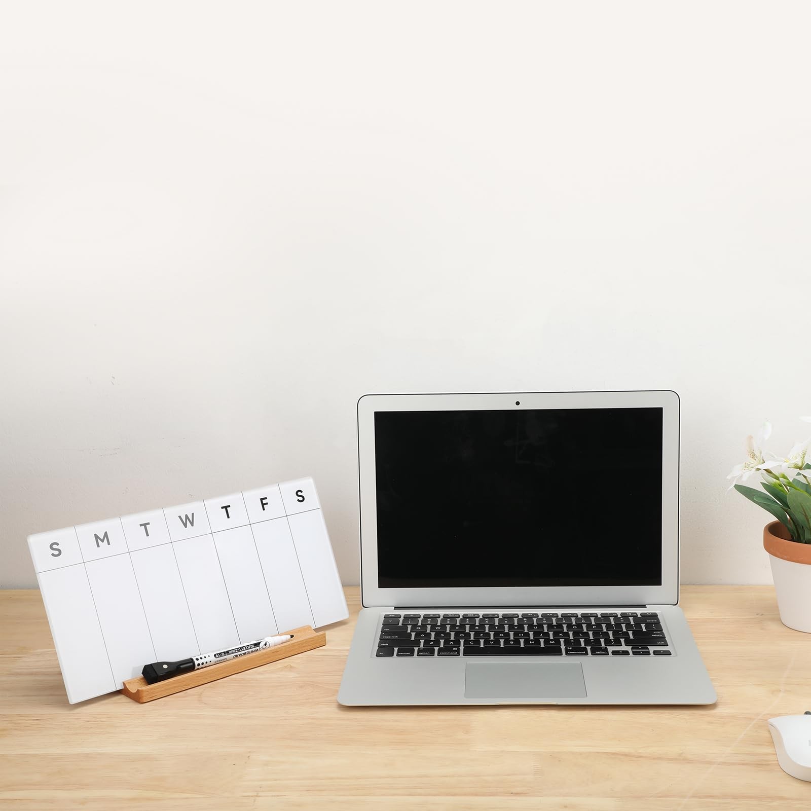 Desktop Glass Weekly Whiteboard with Detachable Wood Stand Weekly Dry Erase B...