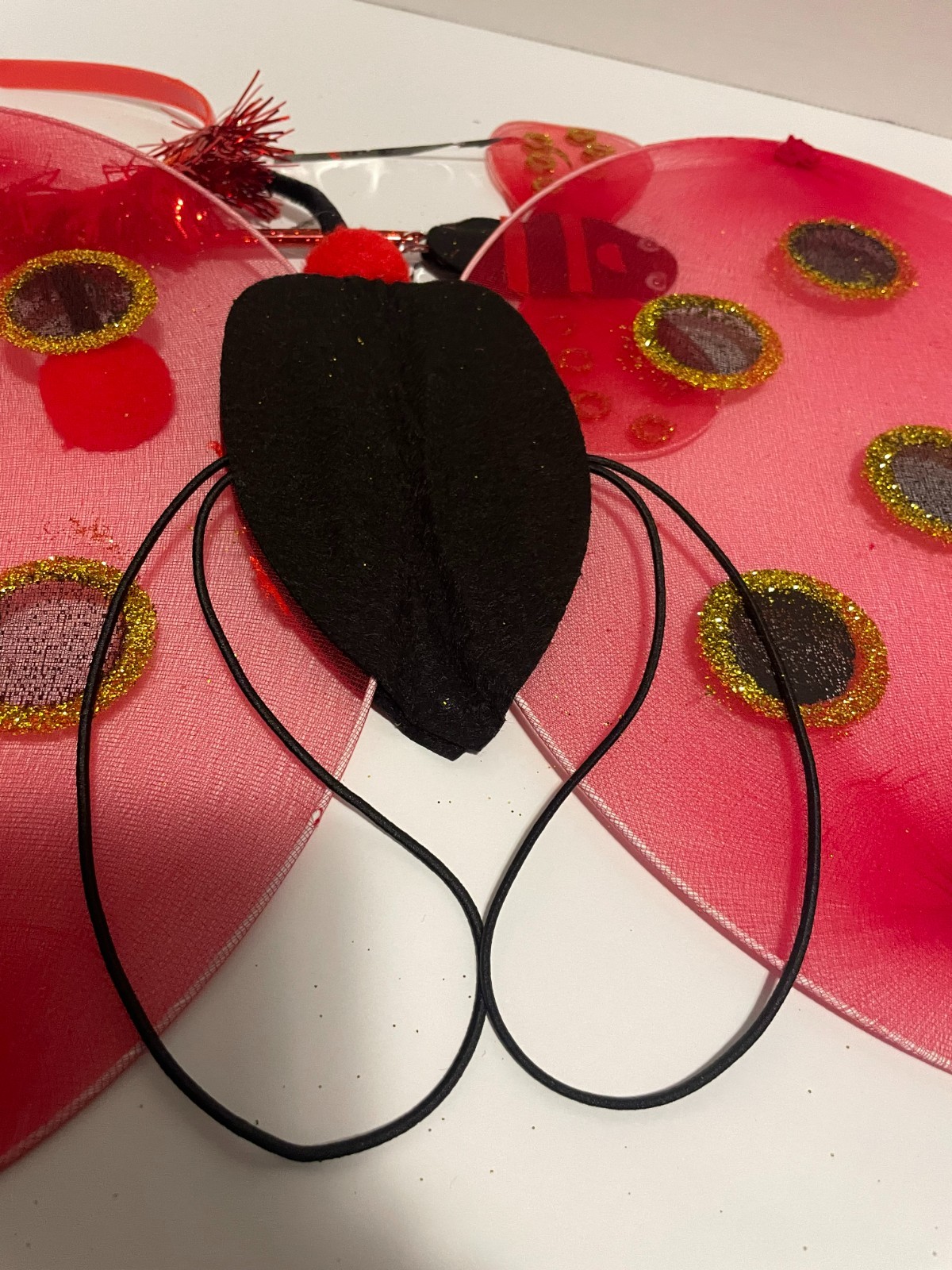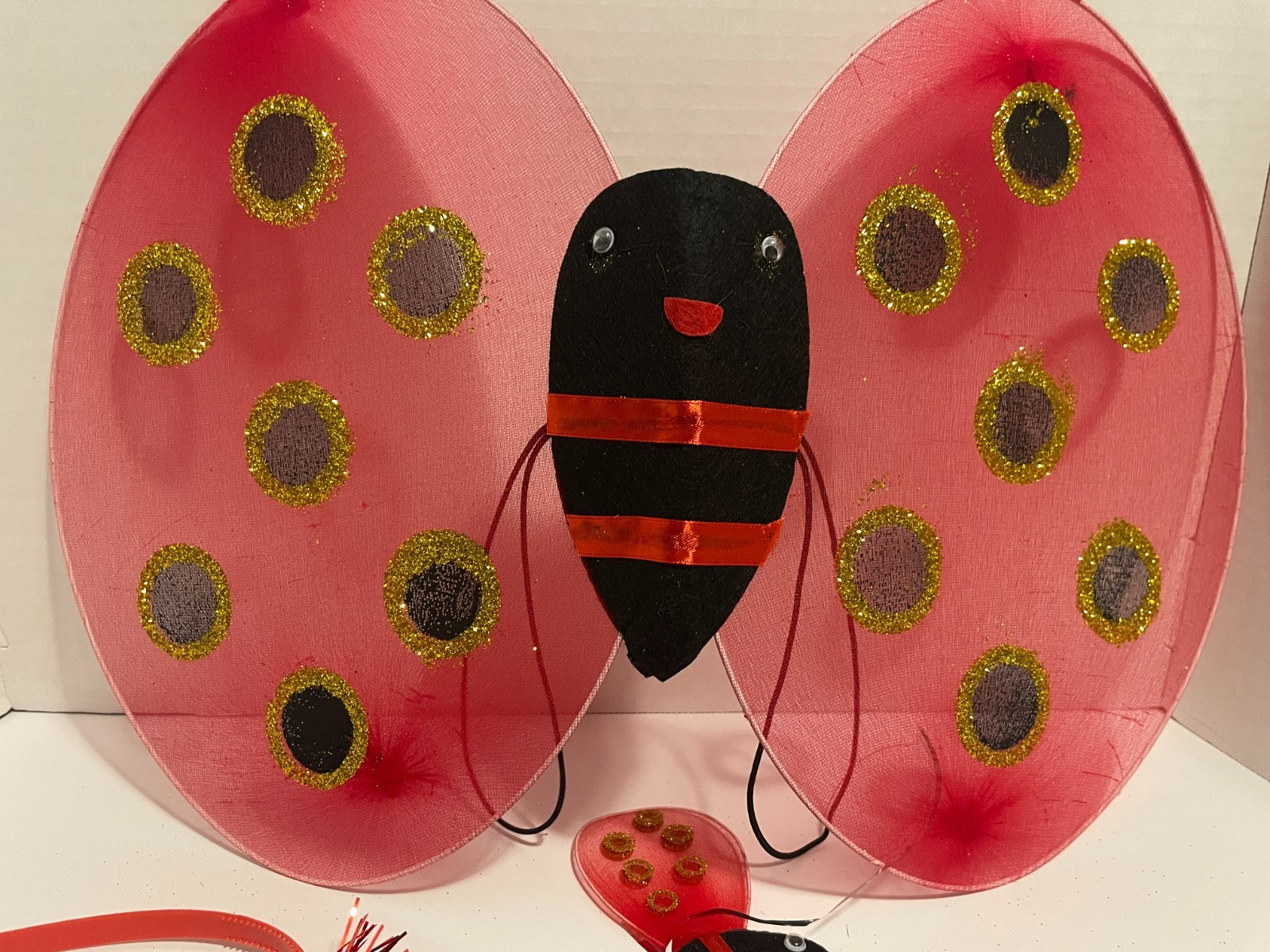 Children's Lady Bug Costume Girls Dress, Wings, Wand Hair Band Antennas