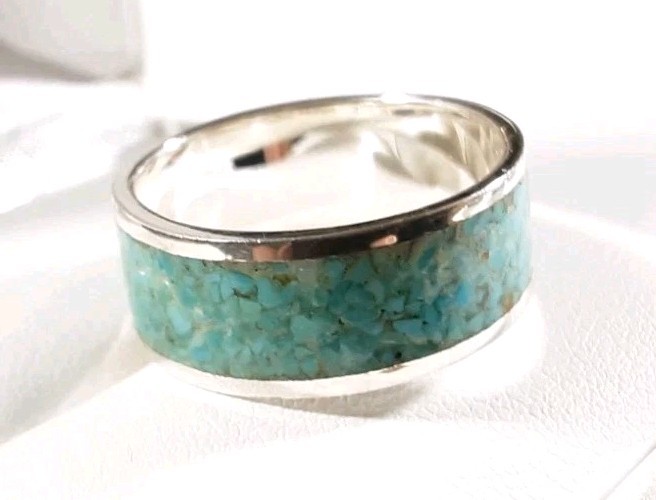 как выглядит 925 STERLING SILVER ETERNITY WIDE BAND TURQUOISE SIZE 7 RING 3.8g фото