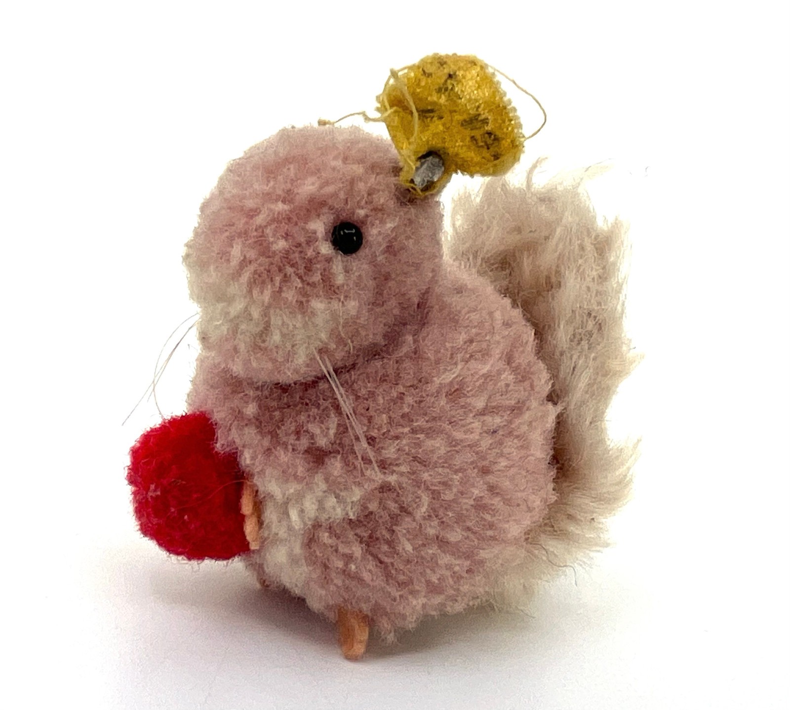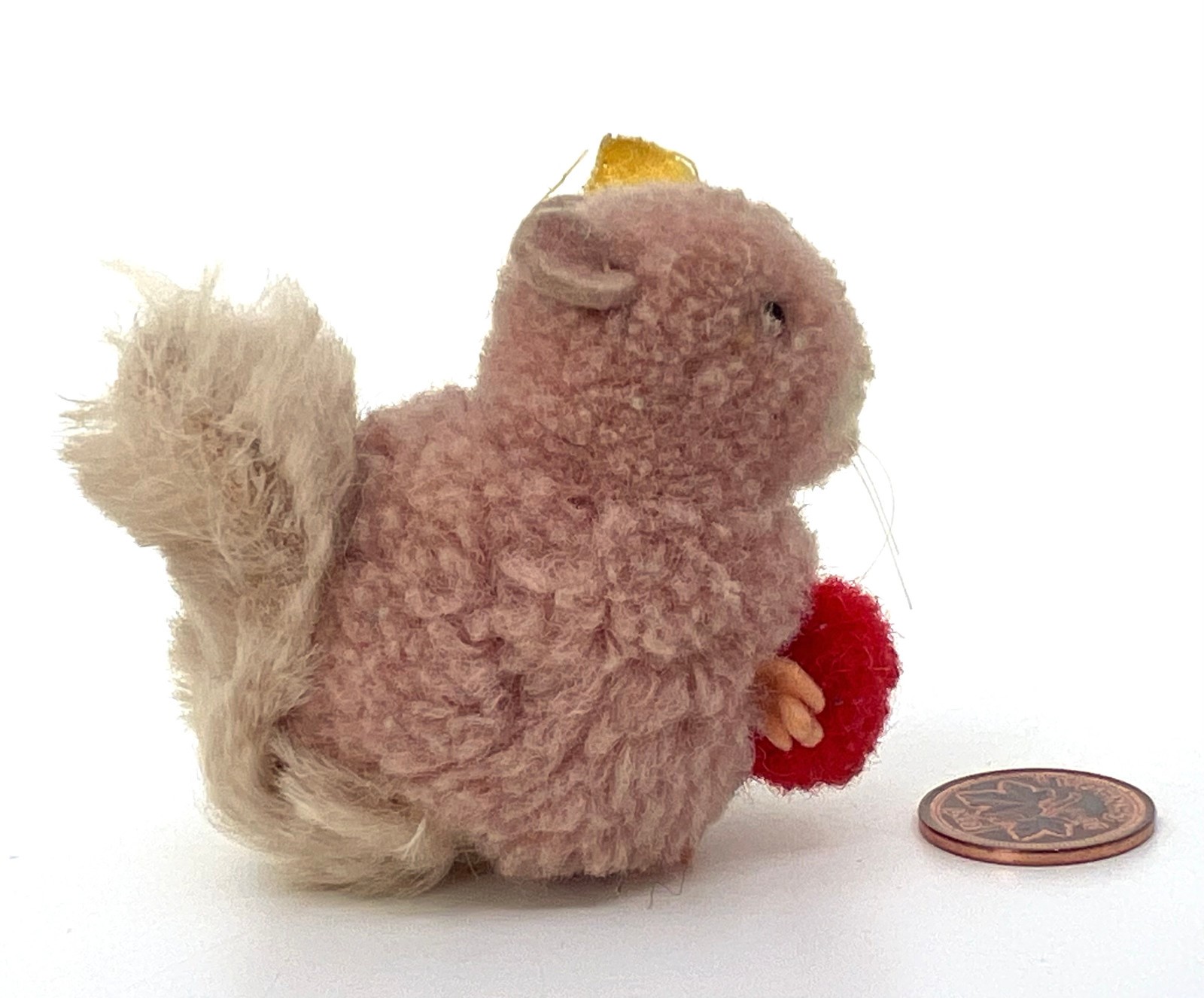 Steiff Woolen Squirrel w Pom Pom Nut 1960s Mohair Tail ID Button Tag 5cm 2in Vtg