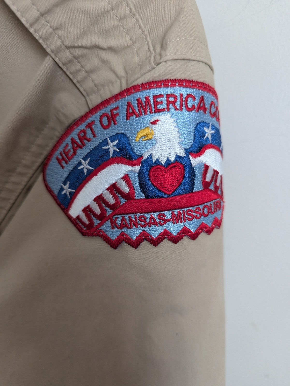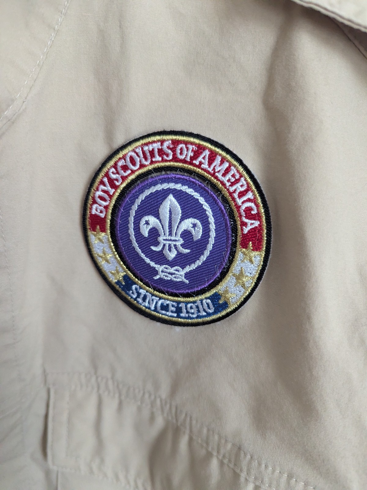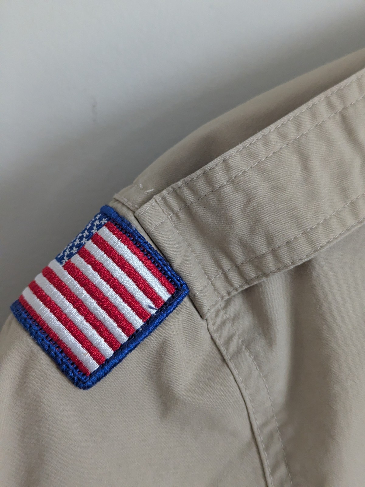 Boy Scouts Official Uniform Shirt Mens Small Vented Patches Cotton Blend Tan EUC