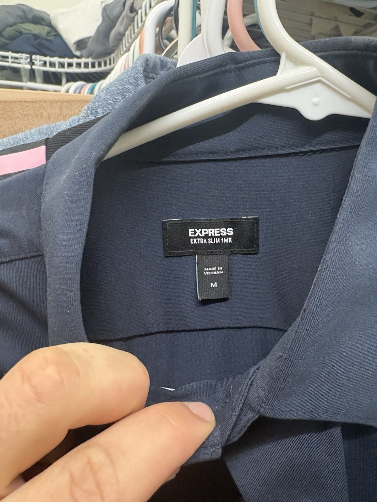 как выглядит Express Extra Slim 1MX Mens Navy Dress Shirt Collared Long Sleeve Size M фото