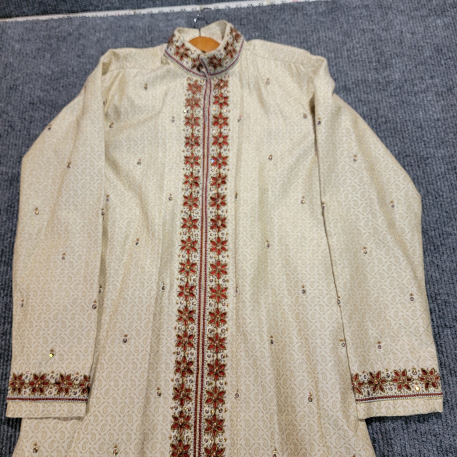 как выглядит Vintage Jade Blue Mens Ivory Embroidered Sherwani Indian Wedding Bollywood... фото