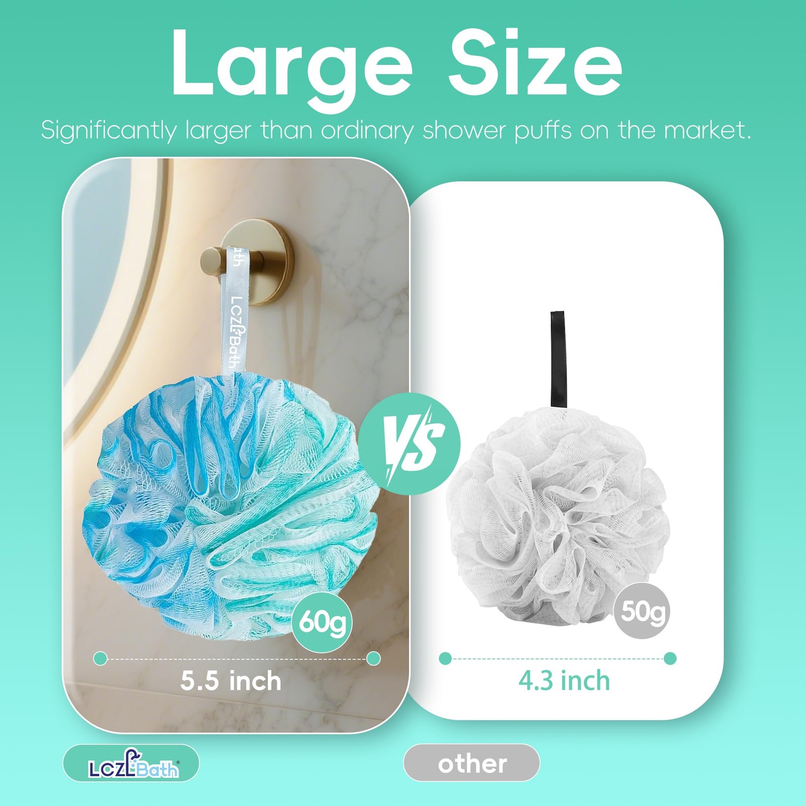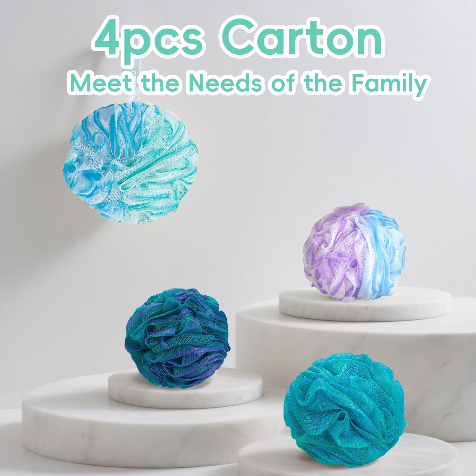 Soft Bath Loofah Set 4PCS - Thick Body Sponges for Men Women, 60g Each
