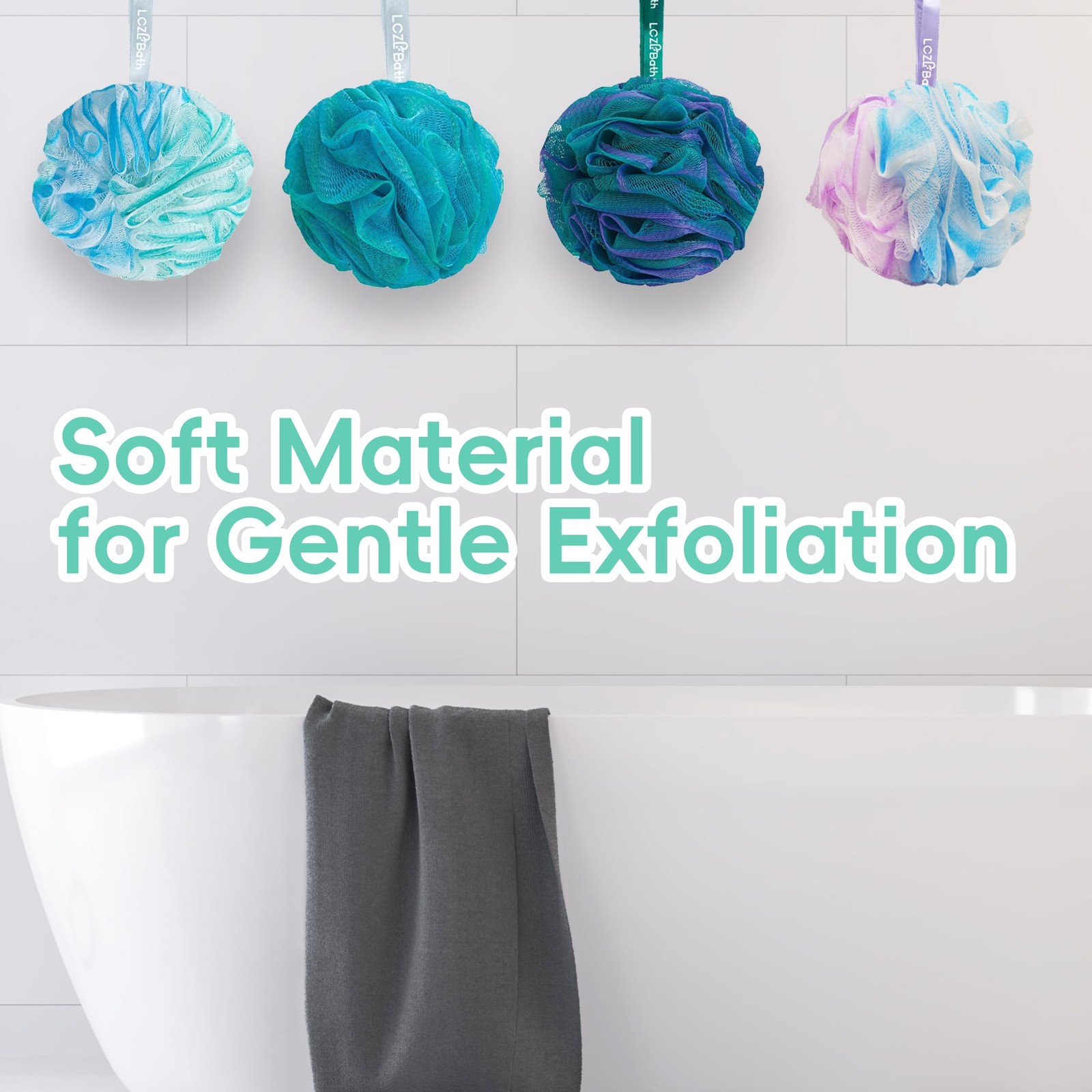 как выглядит Soft Bath Loofah Set 4PCS - Thick Body Sponges for Men Women, 60g Each фото
