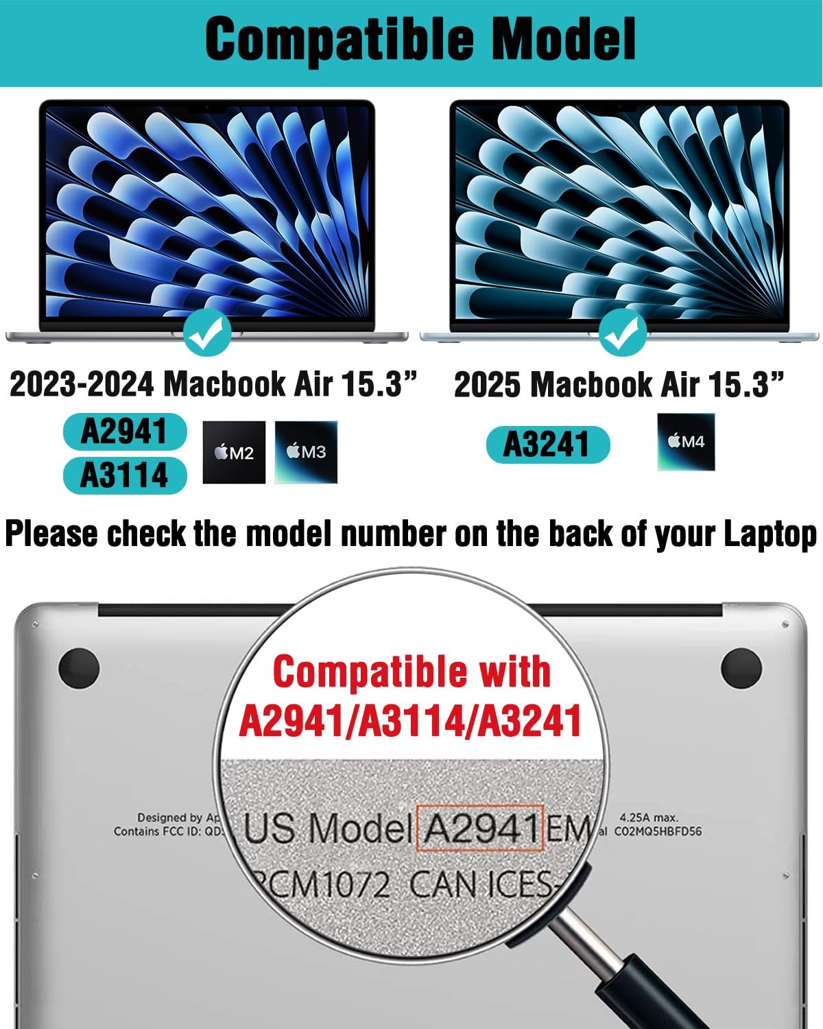 Compatible Devices: Macbook Air 15.3 Inch(2023-2025) (Model: A3241, A3114, A2941)