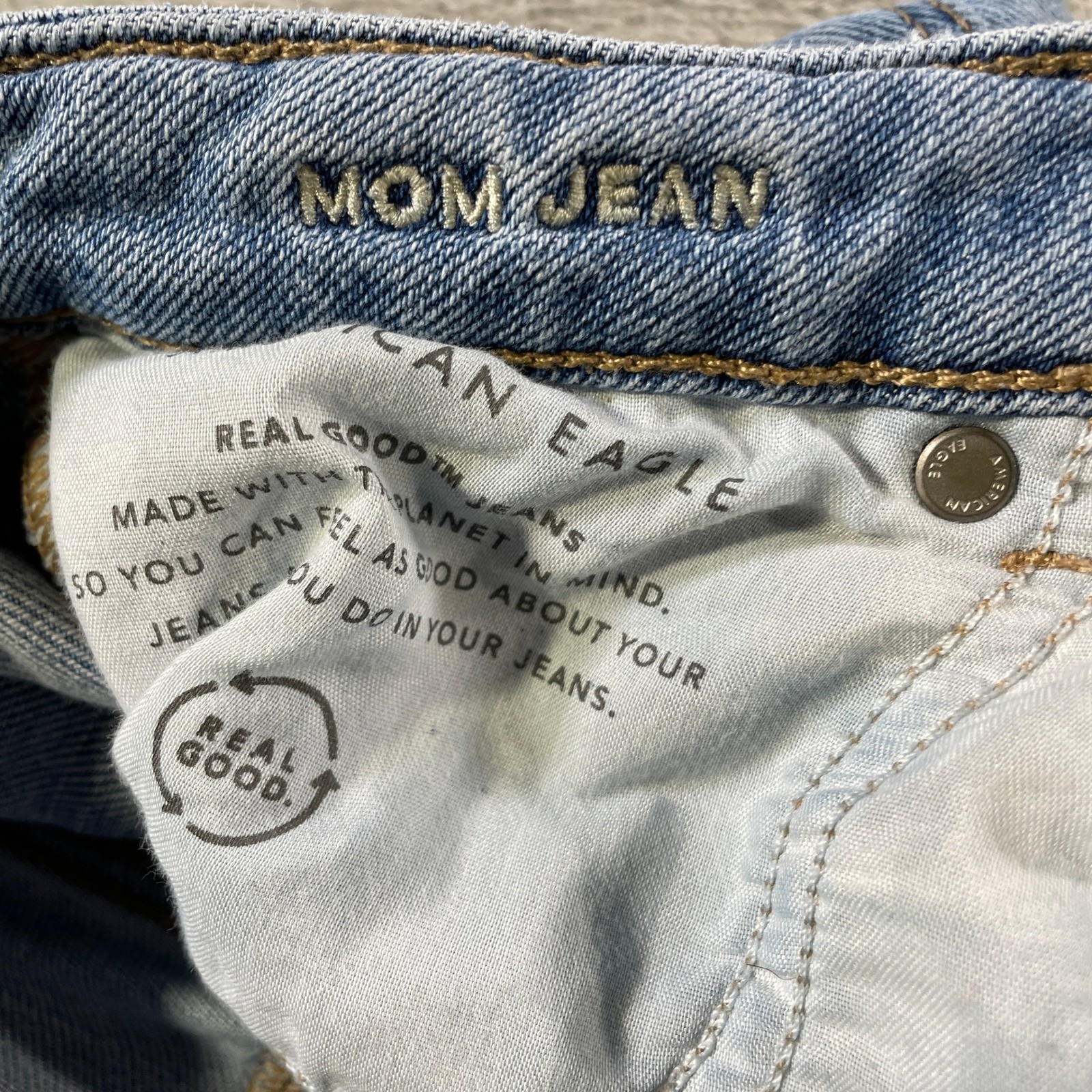 как выглядит American Eagle Mom Jean Womens 4 Blue Light Wash Distressed Casual Preppy фото
